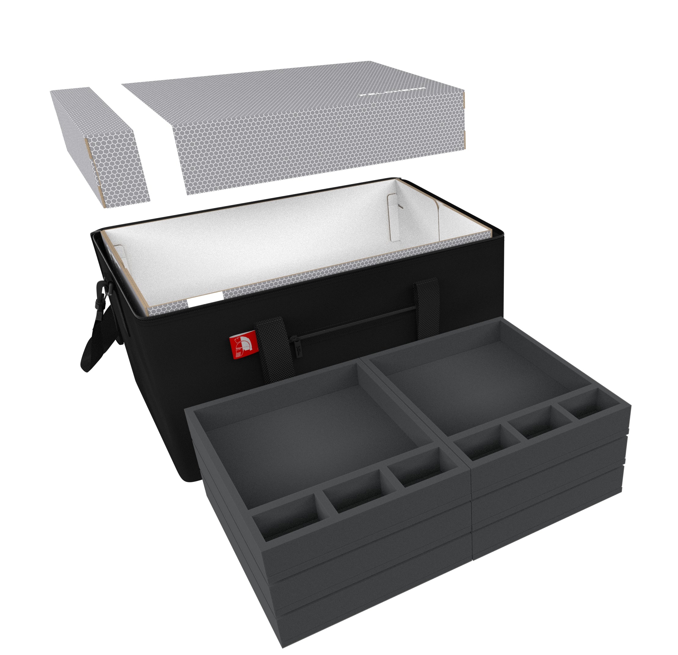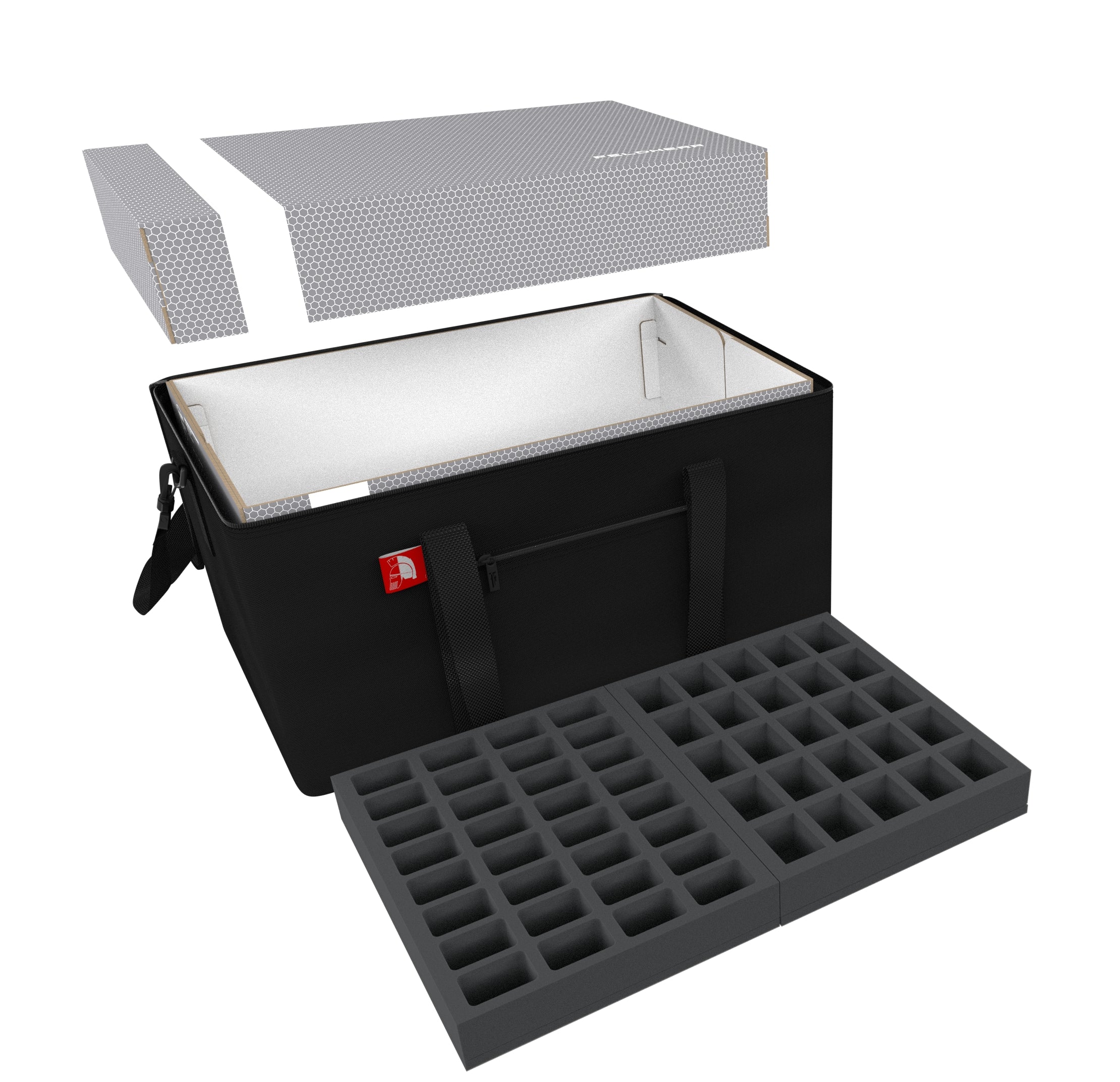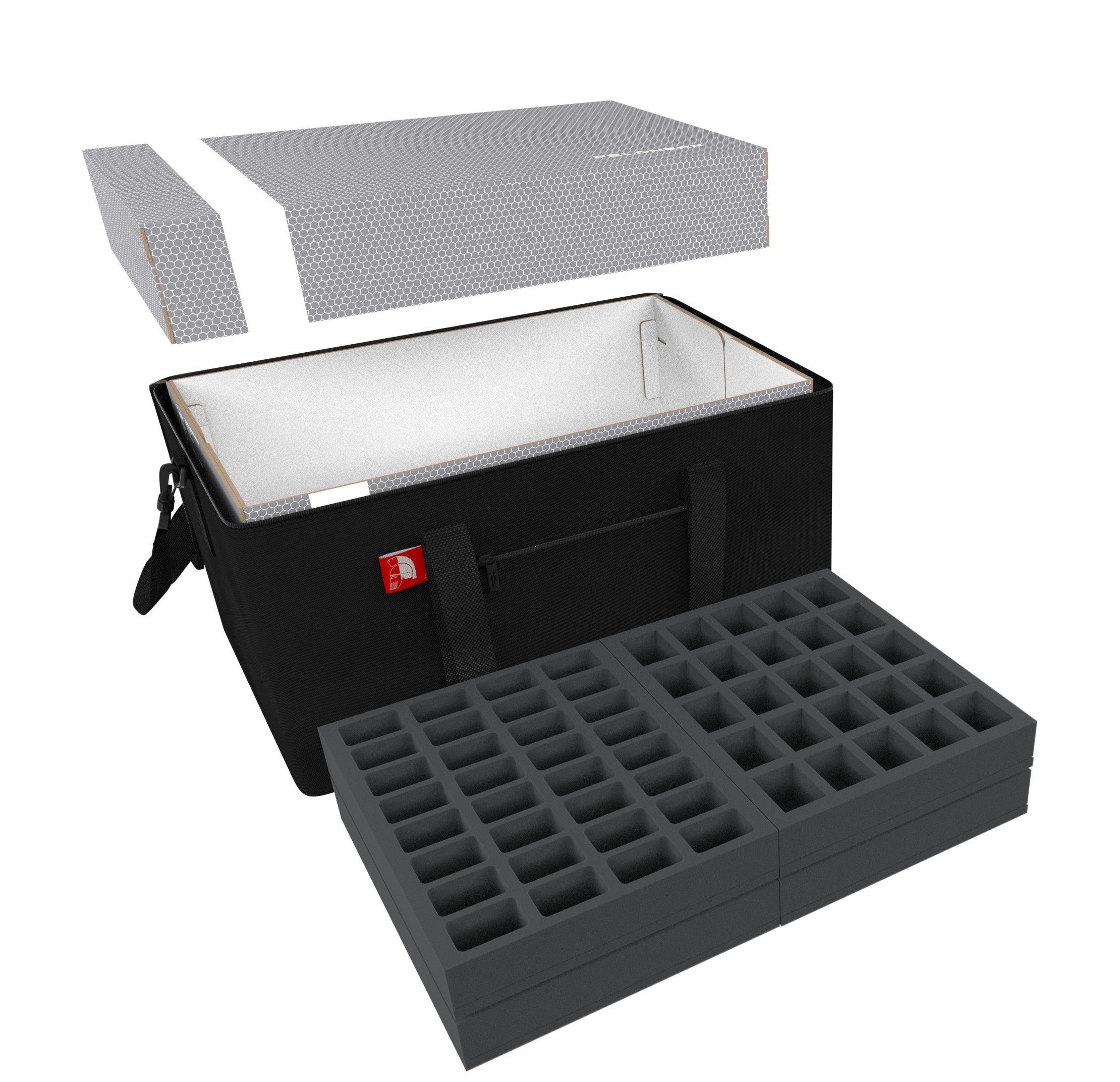 - 2 foam trays with 8 compartments each for medium-sized miniatures (HS040BF02BO)