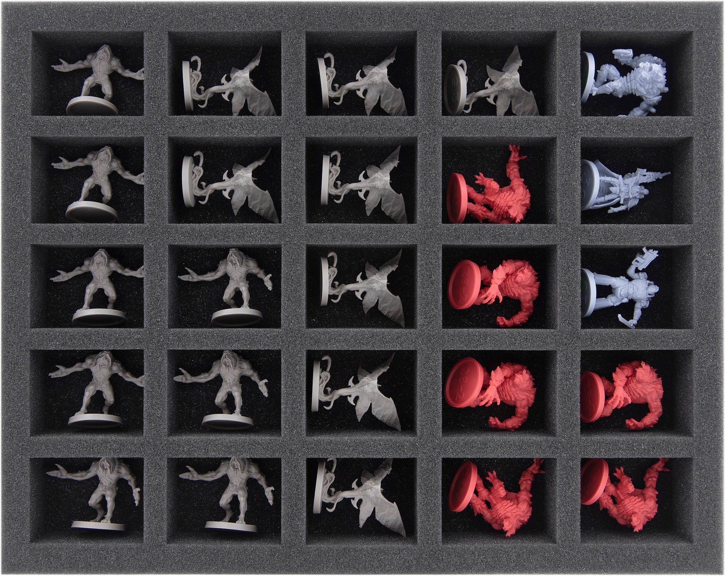 - 1 Full-Size foam tray with 25 compartments for miniatures (FSLQ040BO)