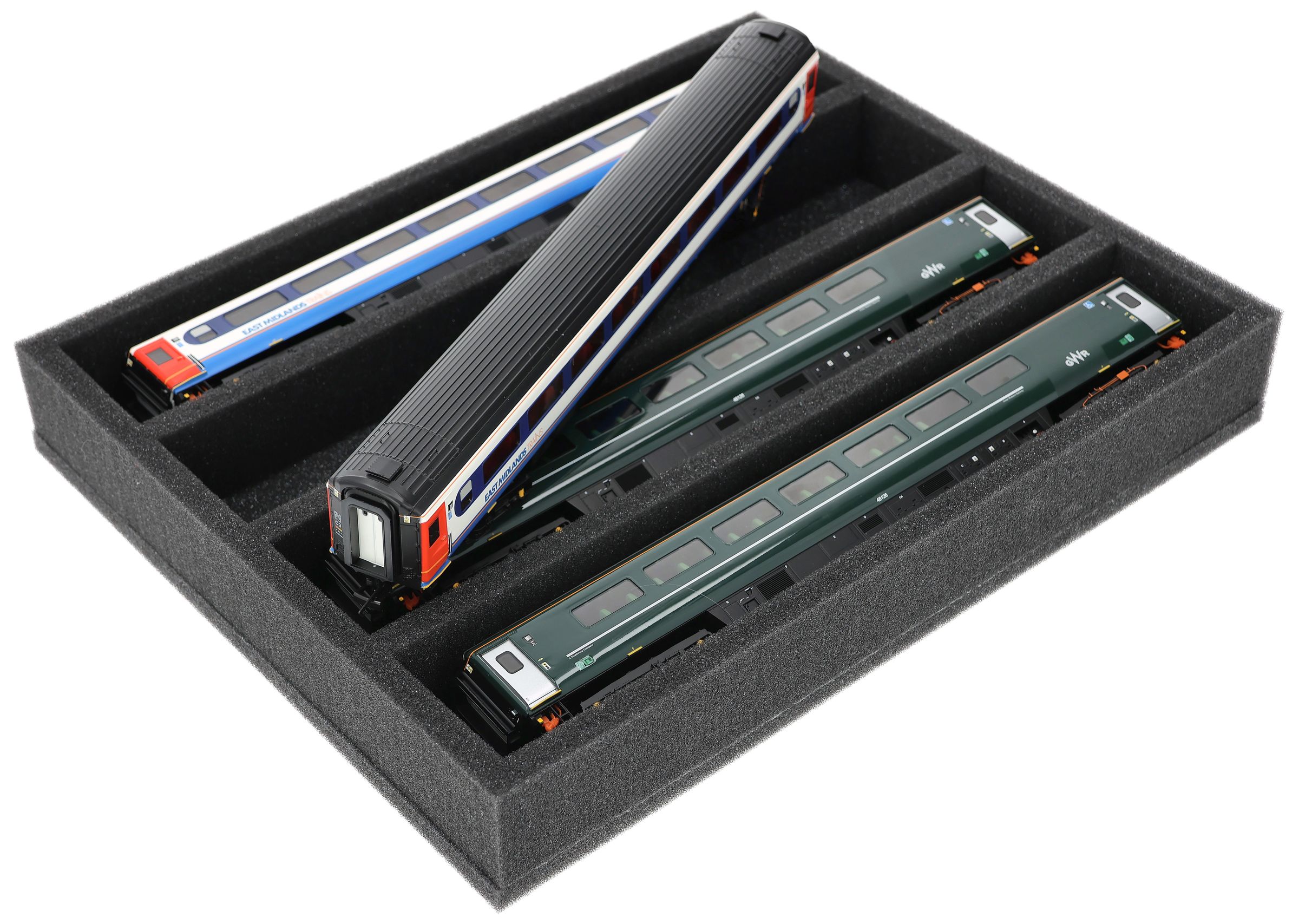 FS050A032 Foam inlay 00 Gauge - horizontal - 4 slots for model railway locomotives, wagons and vehicles