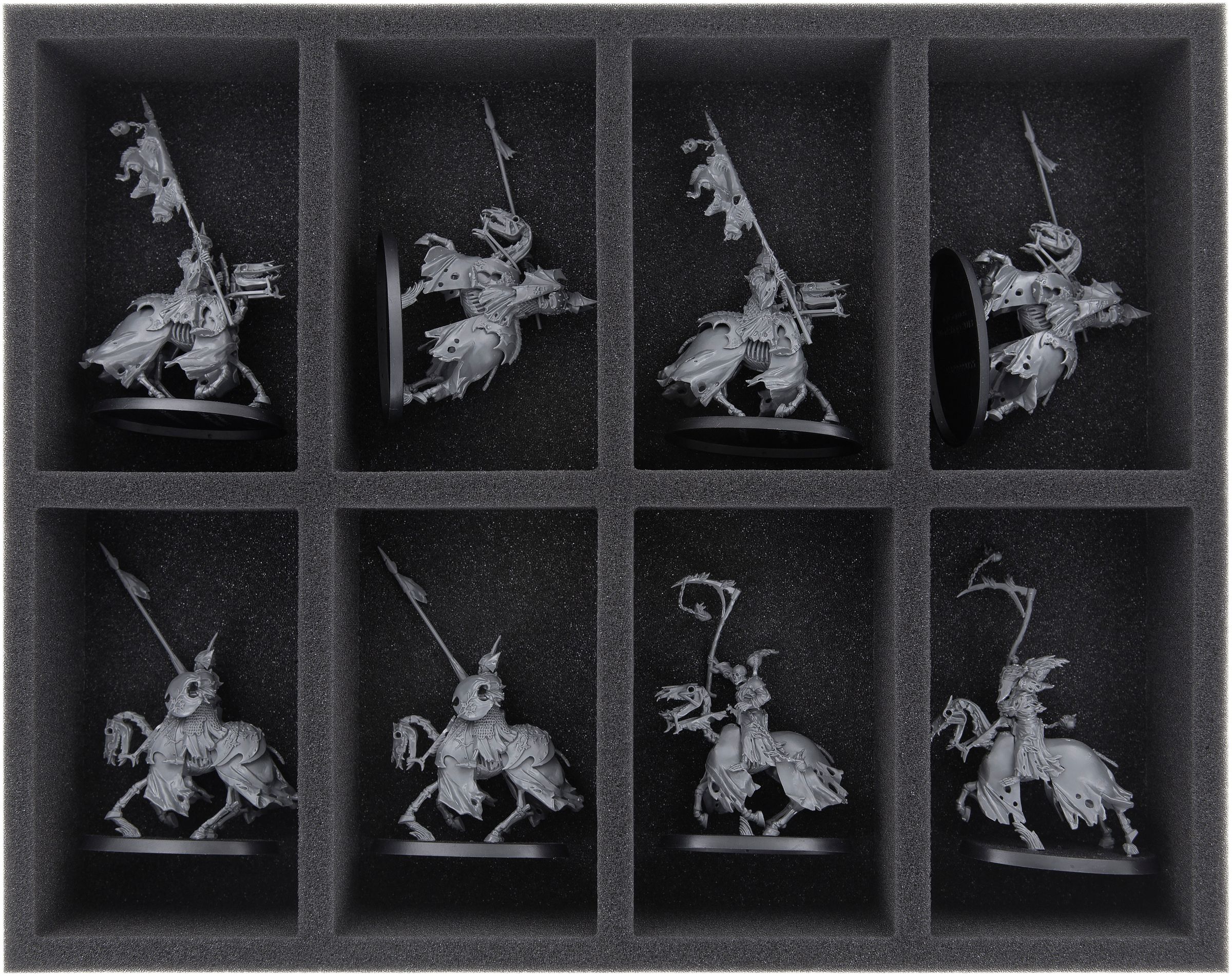To keep the scythes from breaking aside from the battlefields, this Full-Size foam tray with precisely fitting compartments provides optimum protection for the ghostly riders. The Hexwraiths as well as the Black Knights fit into the individual compartments. The soft, chlorine- and acid-free foam protects sensitive parts from damage and preserves the colors of painted miniatures.