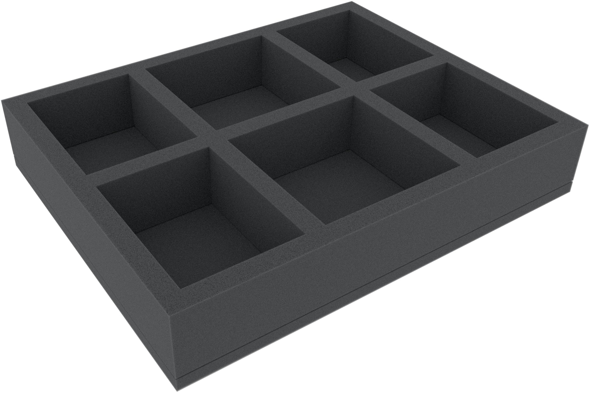 With this foam insert, up to 6 larger miniatures can be optimally protected and return unharmed to the tabletop. The compartments of different sizes are best suited for Celestine, the Living Saint, the Zephyrim Superior and similar sized miniatures.