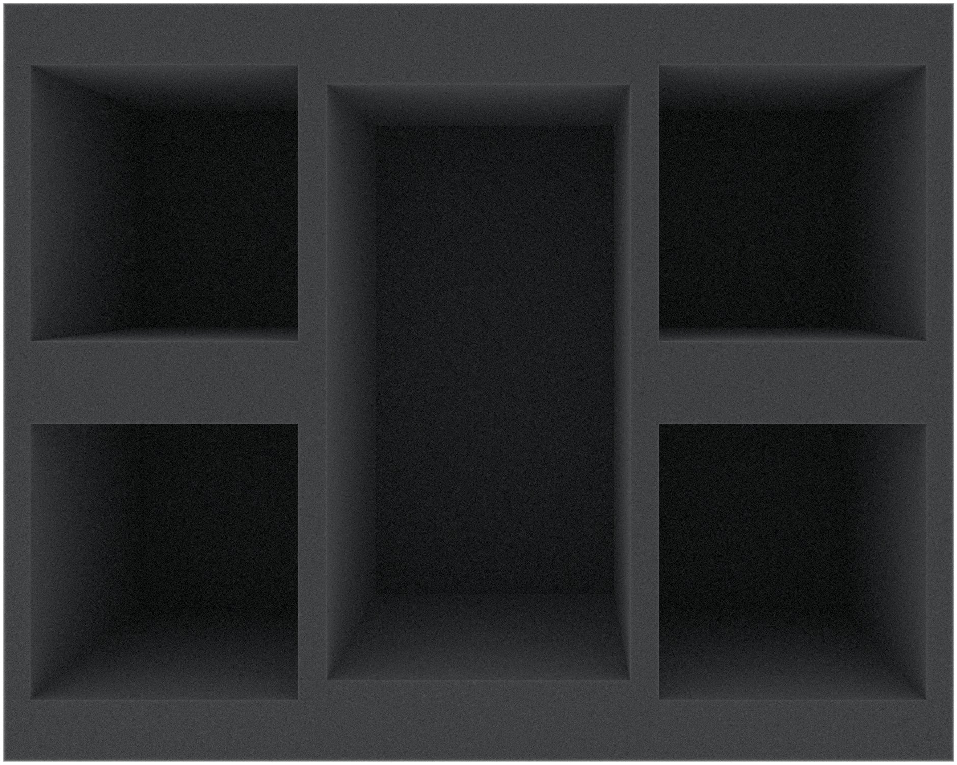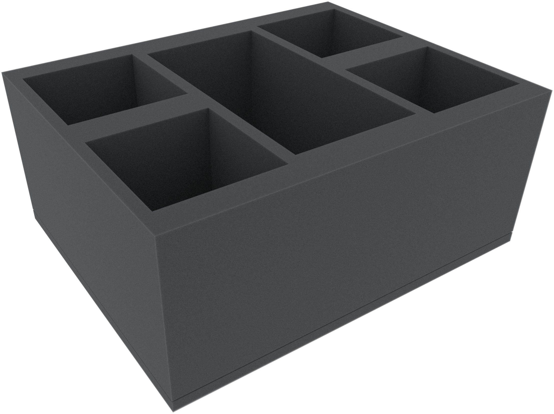 This 145 mm high foam tray is divided into five compartments. The large compartment is ideal for storing a Necromunda Cargo-8 Ridgehauler miniature. Thanks to the precisely fitting cut, the model has a firm fit and does not lose its grip even on bumpy ground. The soft, fine-pored foam protects details like the wheels and armament from premature material fatigue. The colors of painted models are reliably protected against chipping, paint, and abrasion.