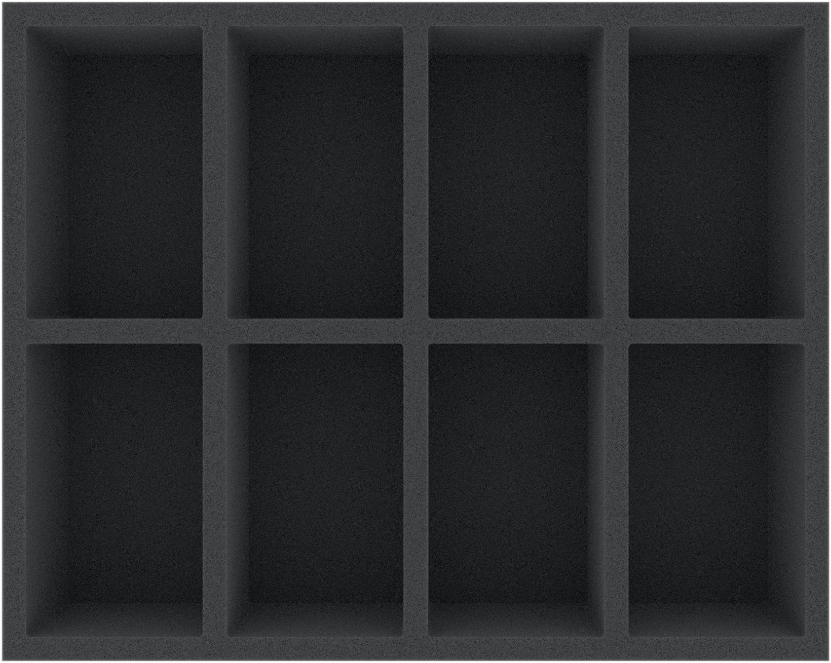 This Full-Size foam tray is divided into 8 compartments. The mat is optimally suited for the safe and clear storage of larger miniatures and for game material.