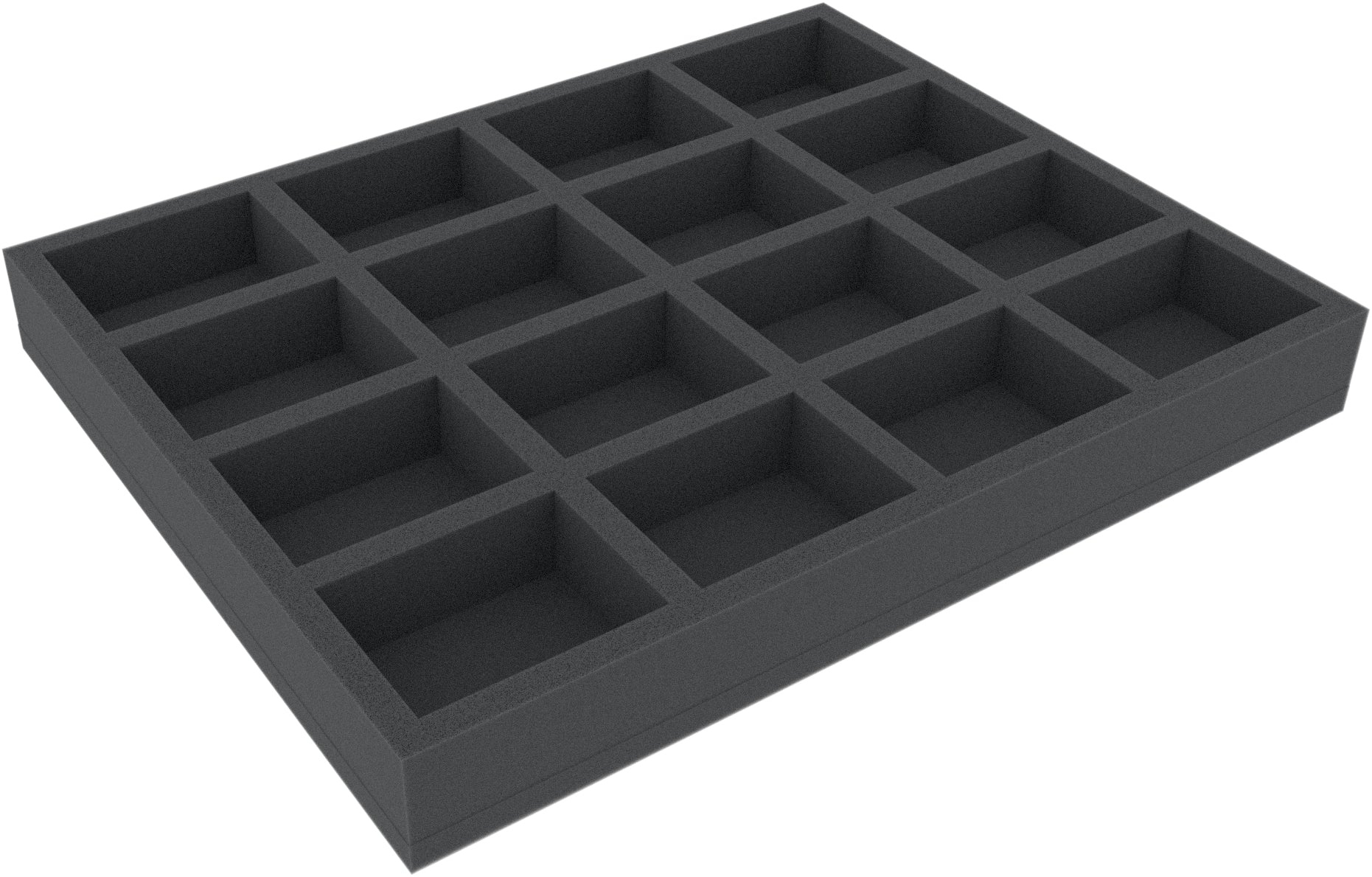 This foam tray features 16 compartments which will keep your miniatures and game accessories safe. The fine-pored foam provides reliable protection for your game material.