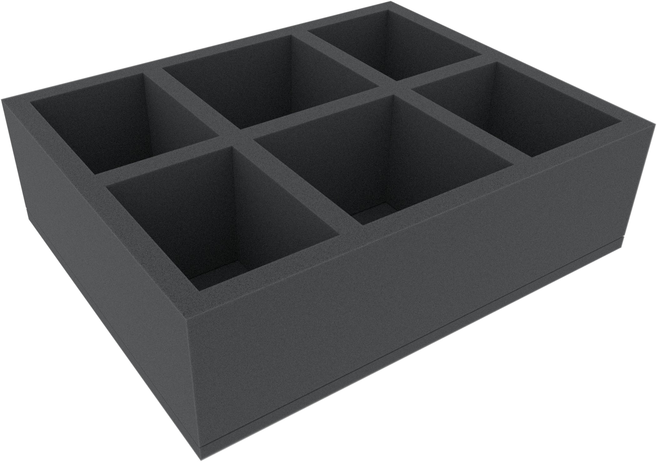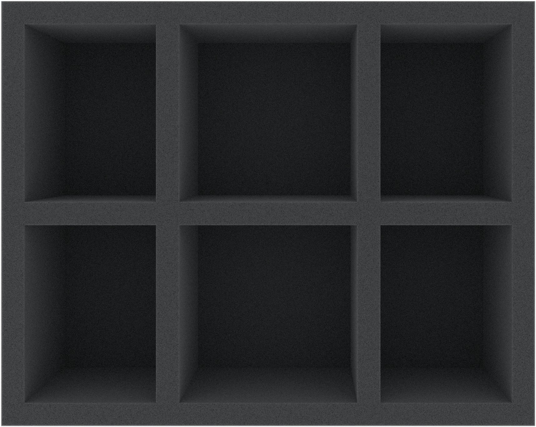 This Full-Size foam tray divides into 6 compartments in 2 different sizes. The four rectangular compartments on the outside and 2 square compartments in the middle are particularly suitable for larger and bulky tabletop and board game miniatures, like vehicles or monsters.