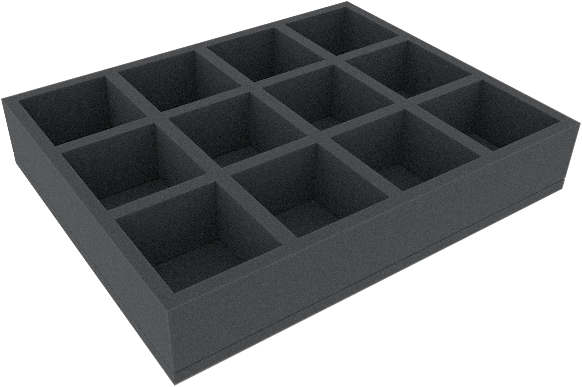 This Full-Size foam tray is divided into 12 compartments. The mat is optimally suited for the safe and clear storage of larger miniatures and for game material.