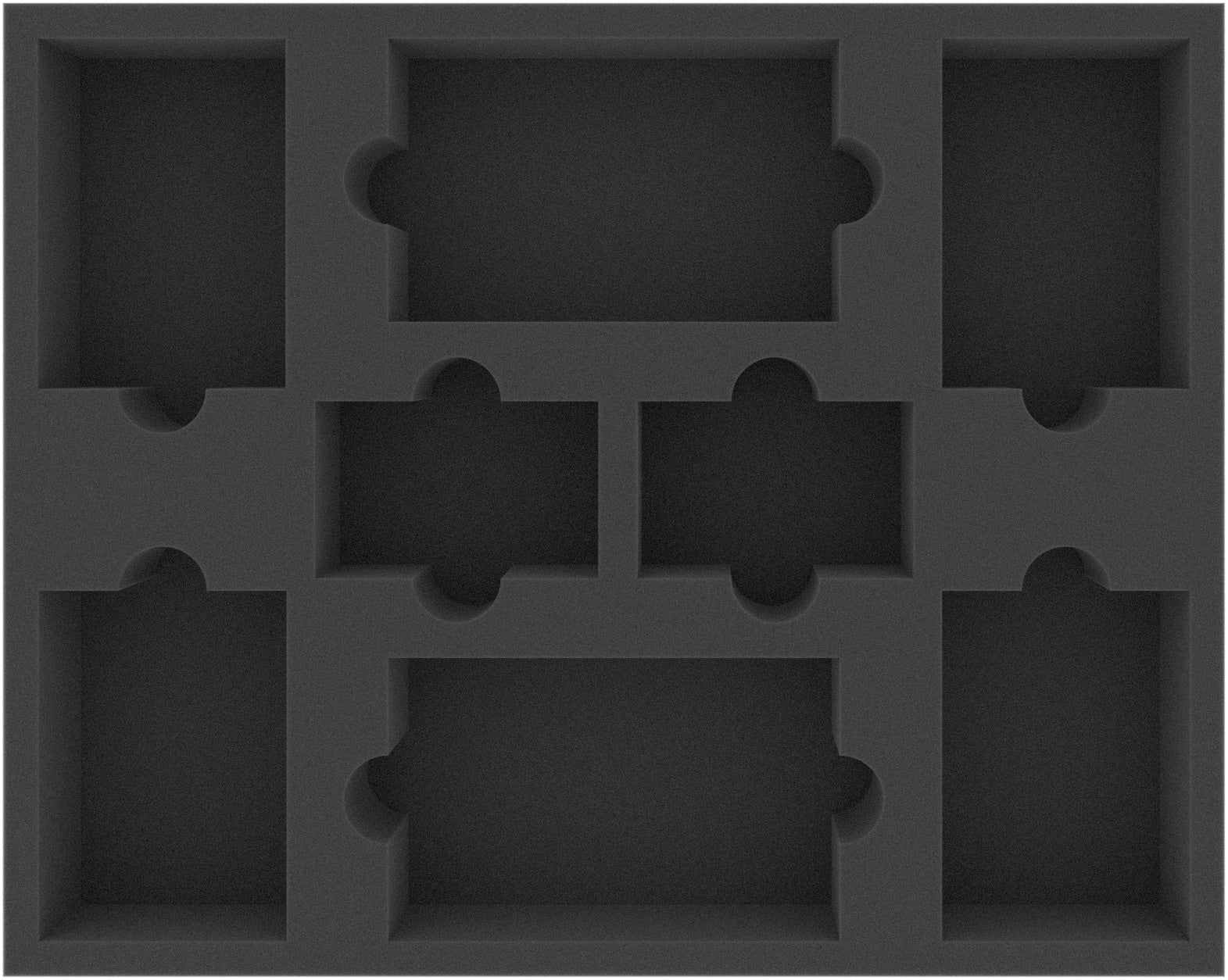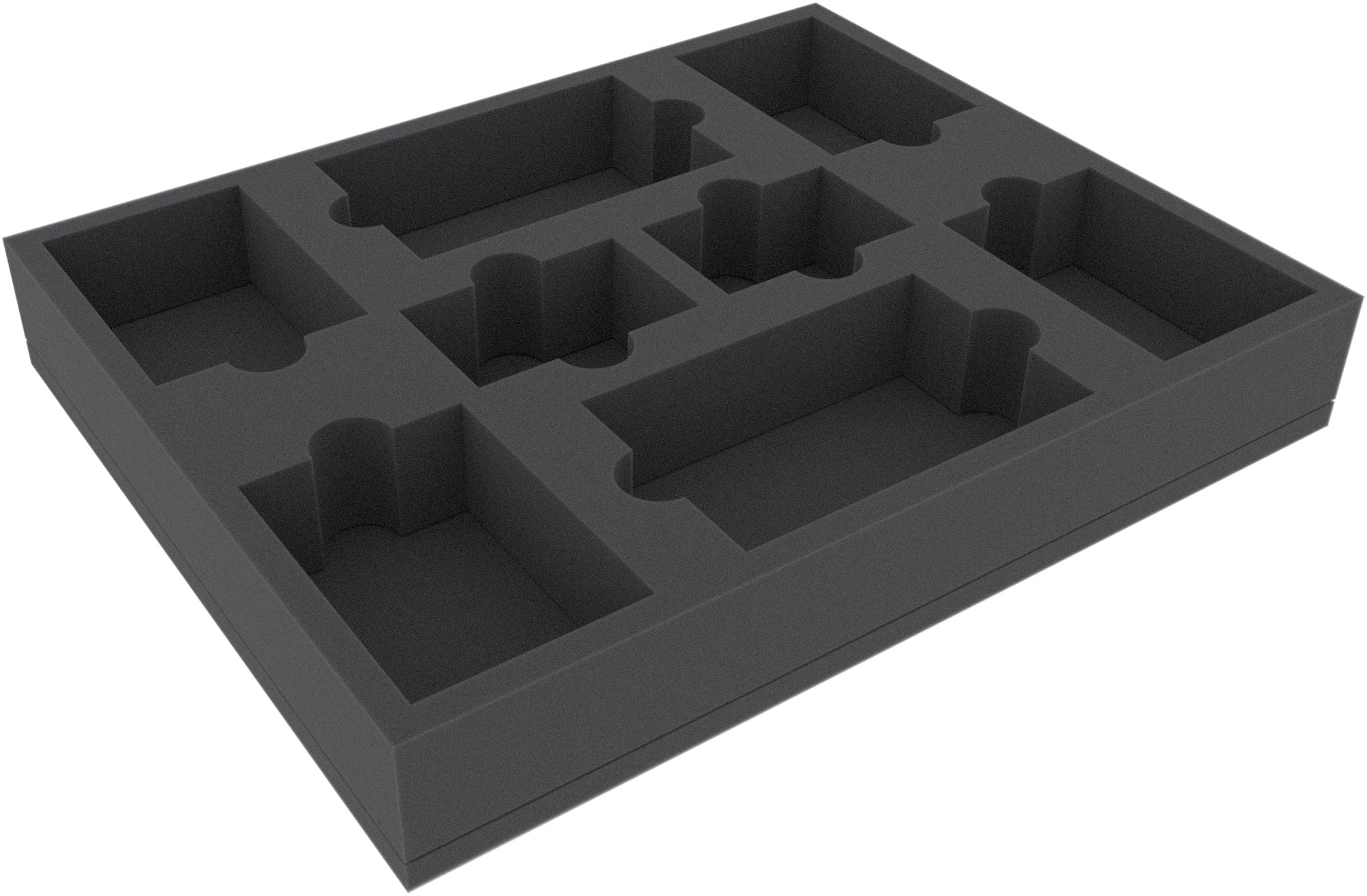This Full-Size foam tray has 8 compartments of different sizes. It is particularly suitable for clear storage of game material such as cards, tiles or tokens.