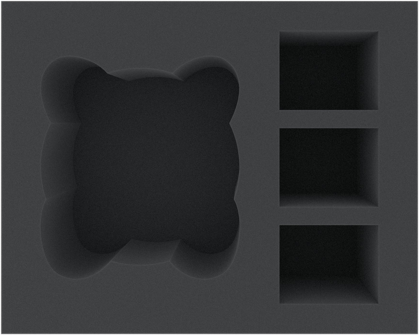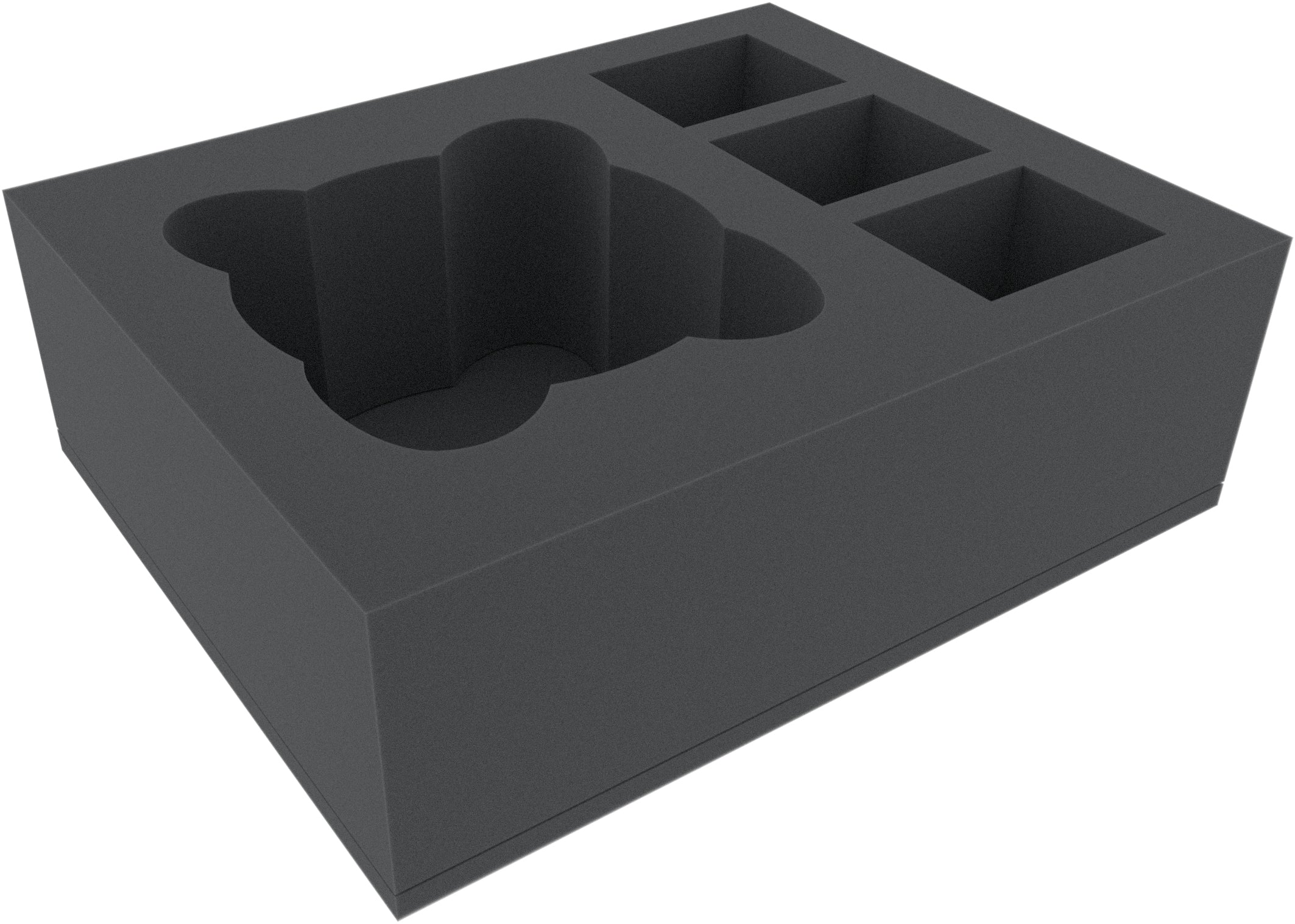 This 110 mm mm high foam tray is divided into 4 compartments. It is particularly suitable for the safe storage of tabletop and board game miniatures, as well as other fragile models and small parts.