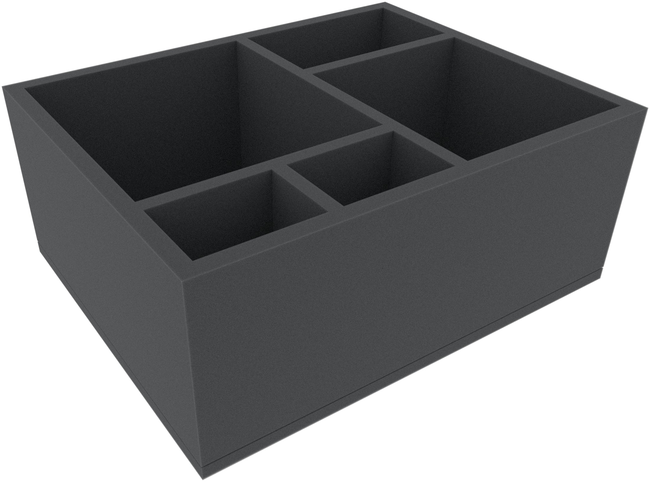 This Full-Size foam tray is divided into 5 compartments. The insert is optimally suited for the safe and clear storage of larger miniatures and for game material.
