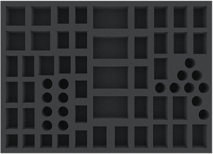 This 40 mm high foam tray is divided into 64 compartments. It is particularly suitable for the safe storage of tabletop and board game miniatures, as well as other fragile models and small parts.