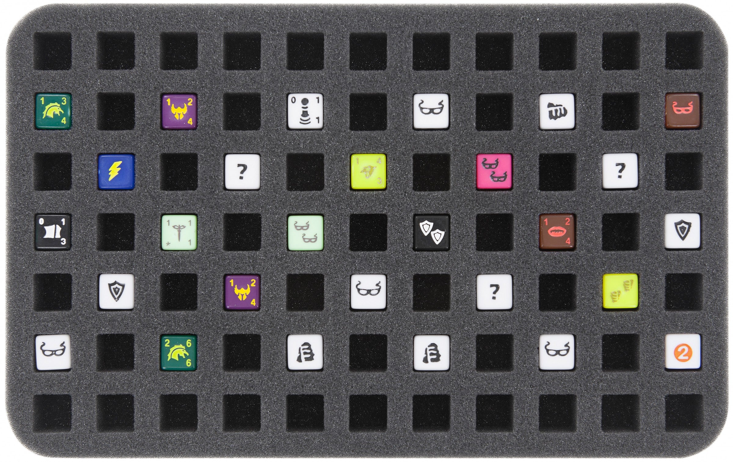 Foam tray with 77 cut-outs (14 mm x 14 mm) for Dice Masters.