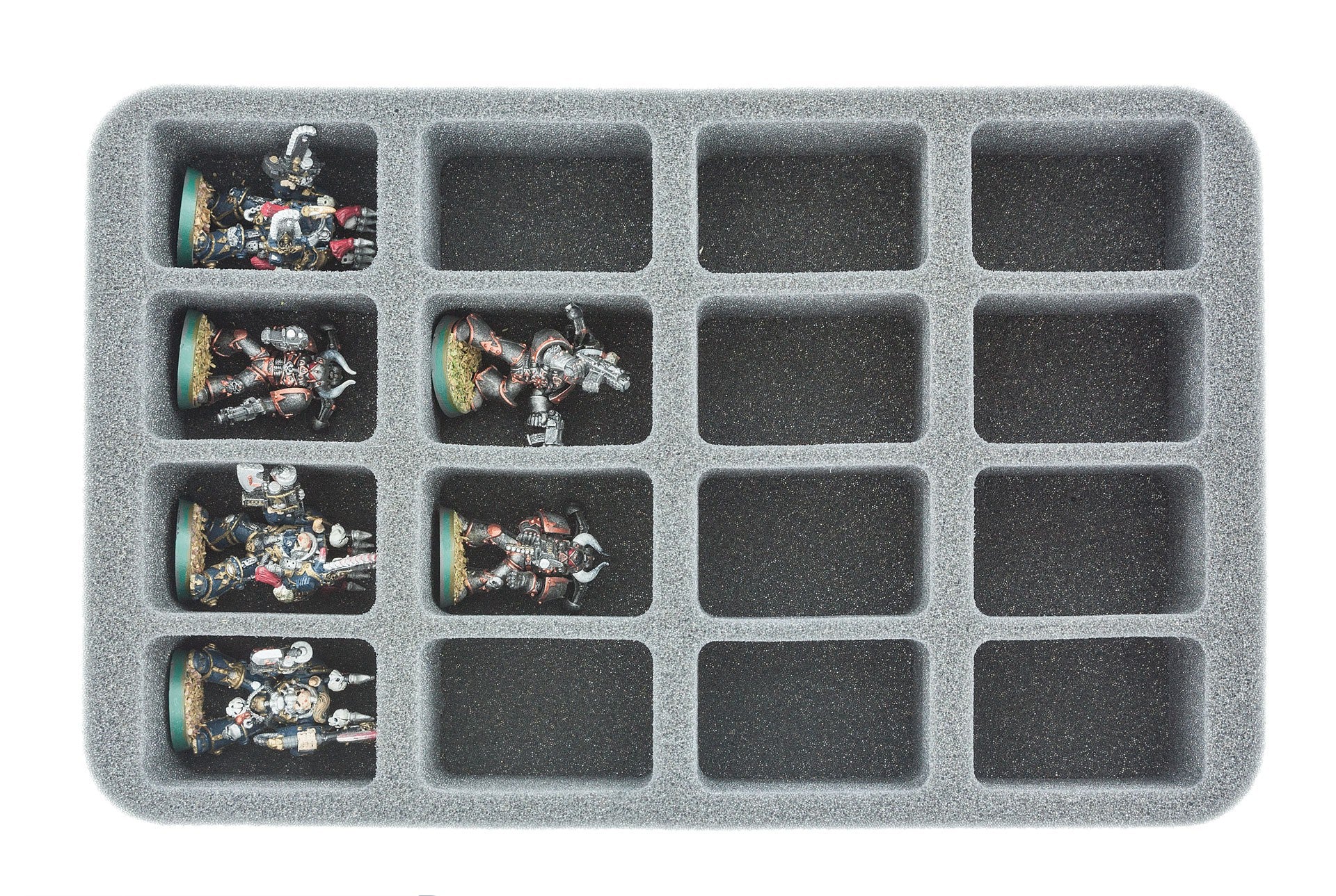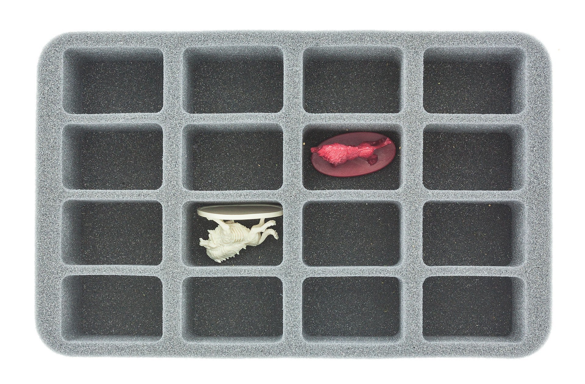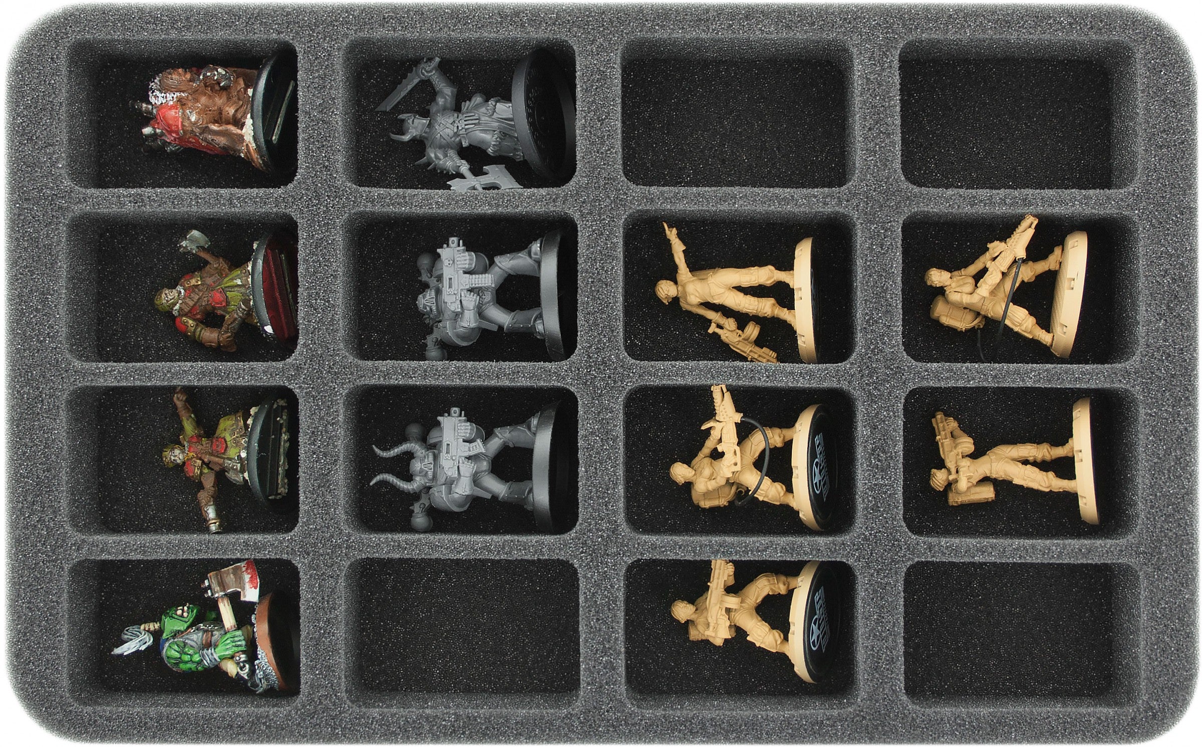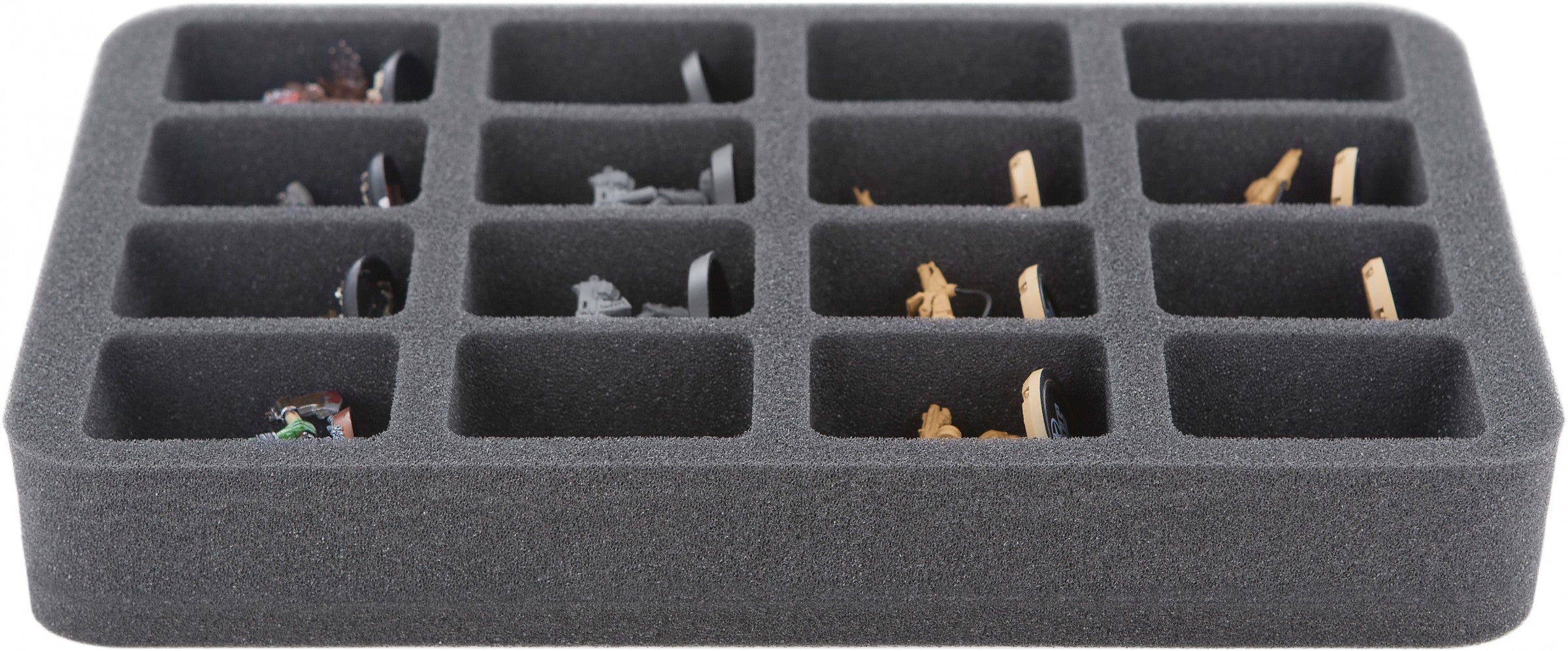 This Half-Size is divided into 16 compartments of the same size. It is best suited for tabletop and board game miniatures with bases up to 30 mm.