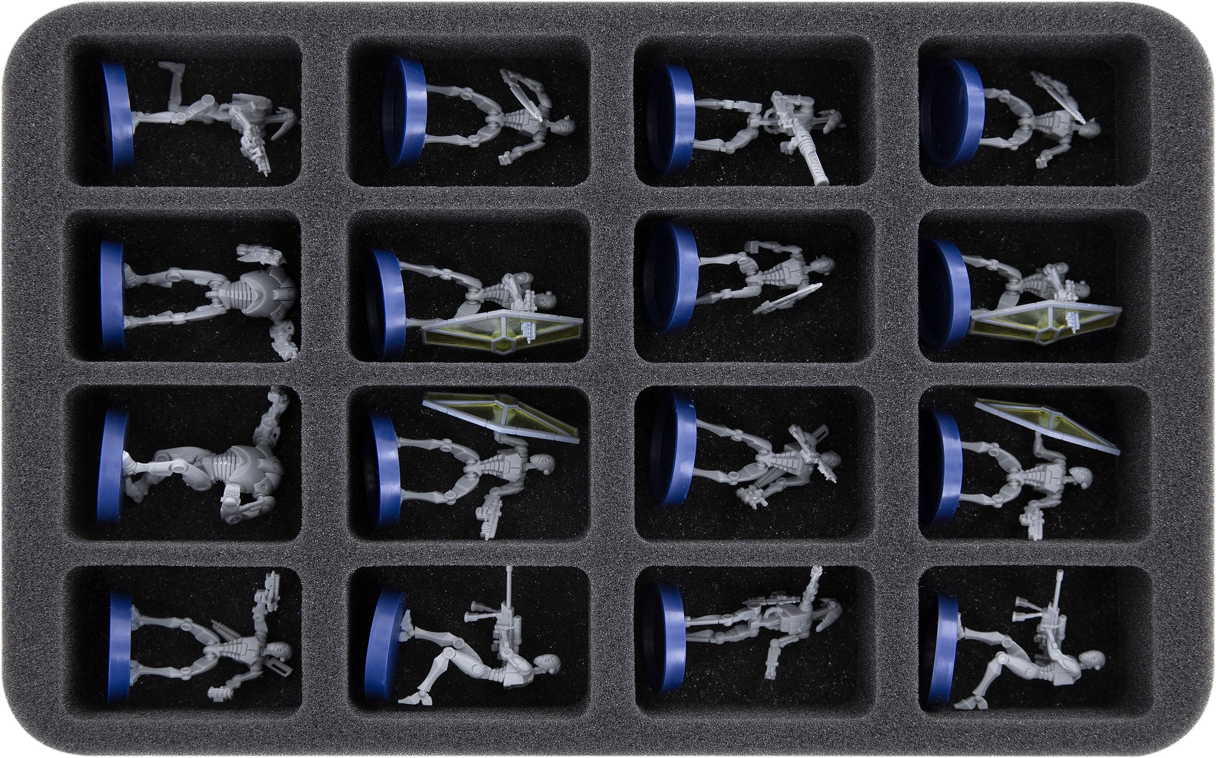 In the total of 16 compartments of our half-size foam tray for Star Wars: Legion can be accommodated up to 16 miniatures.