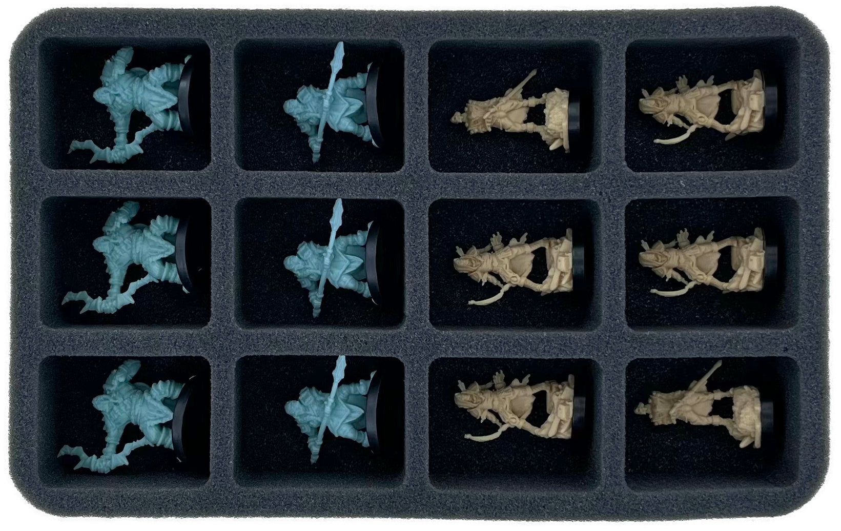 On this Feldherr foam tray you have space for up to 12 miniatures of your warband. The insert is especially suitable for storing the Ironskull Skeleton Archers, Ironskull Executioners, Grimfang Orcs and similar sized models.