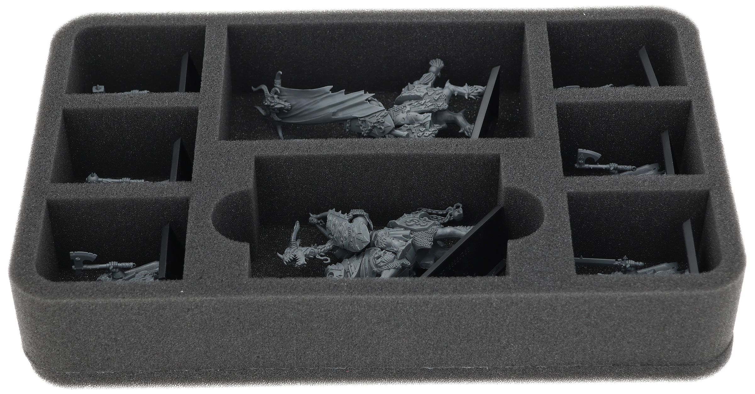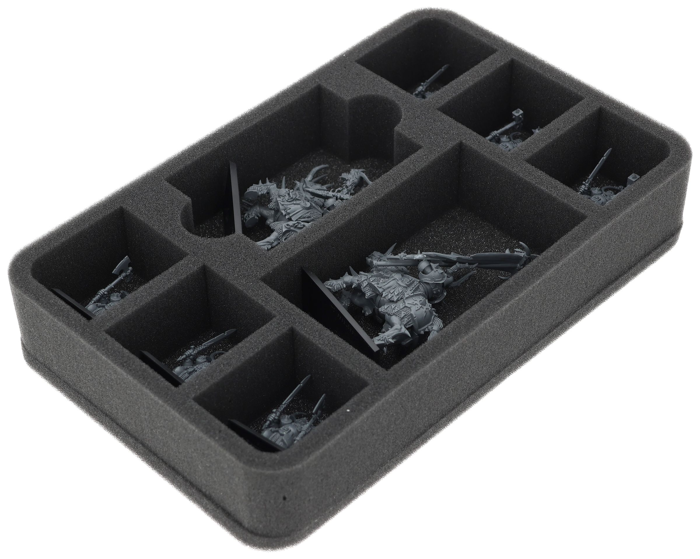 On this Feldherr foam tray you have space for up to 8 miniatures of your army. The insert is especially suitable for storing the Marauder Horseman, Chaos Marauders, Chaos Knights, Chaos Warriors and similar sized models.