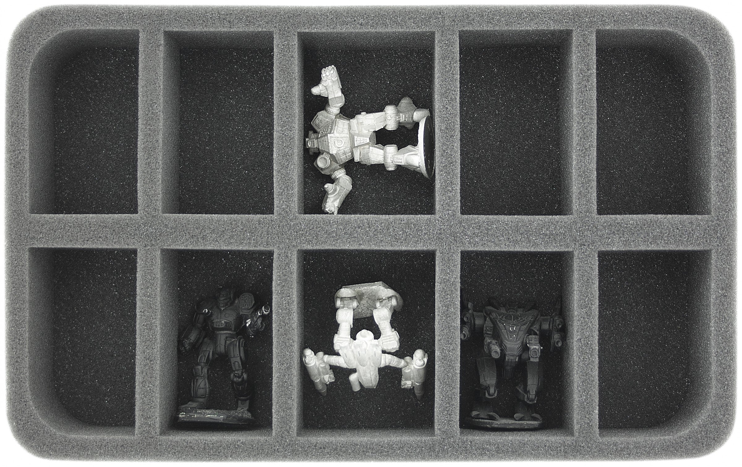 This foam tray with 10 compartments is ideal for storing up to 10 huge BattleTech miniatures, clearly arranged and well protected.