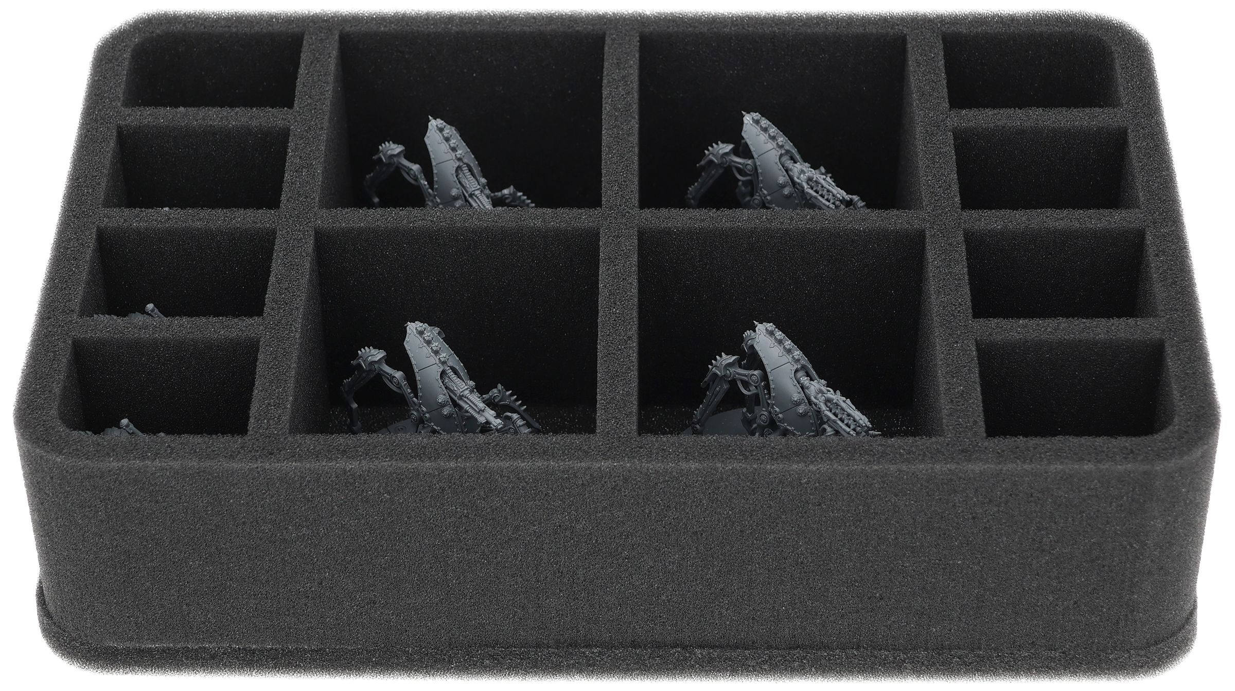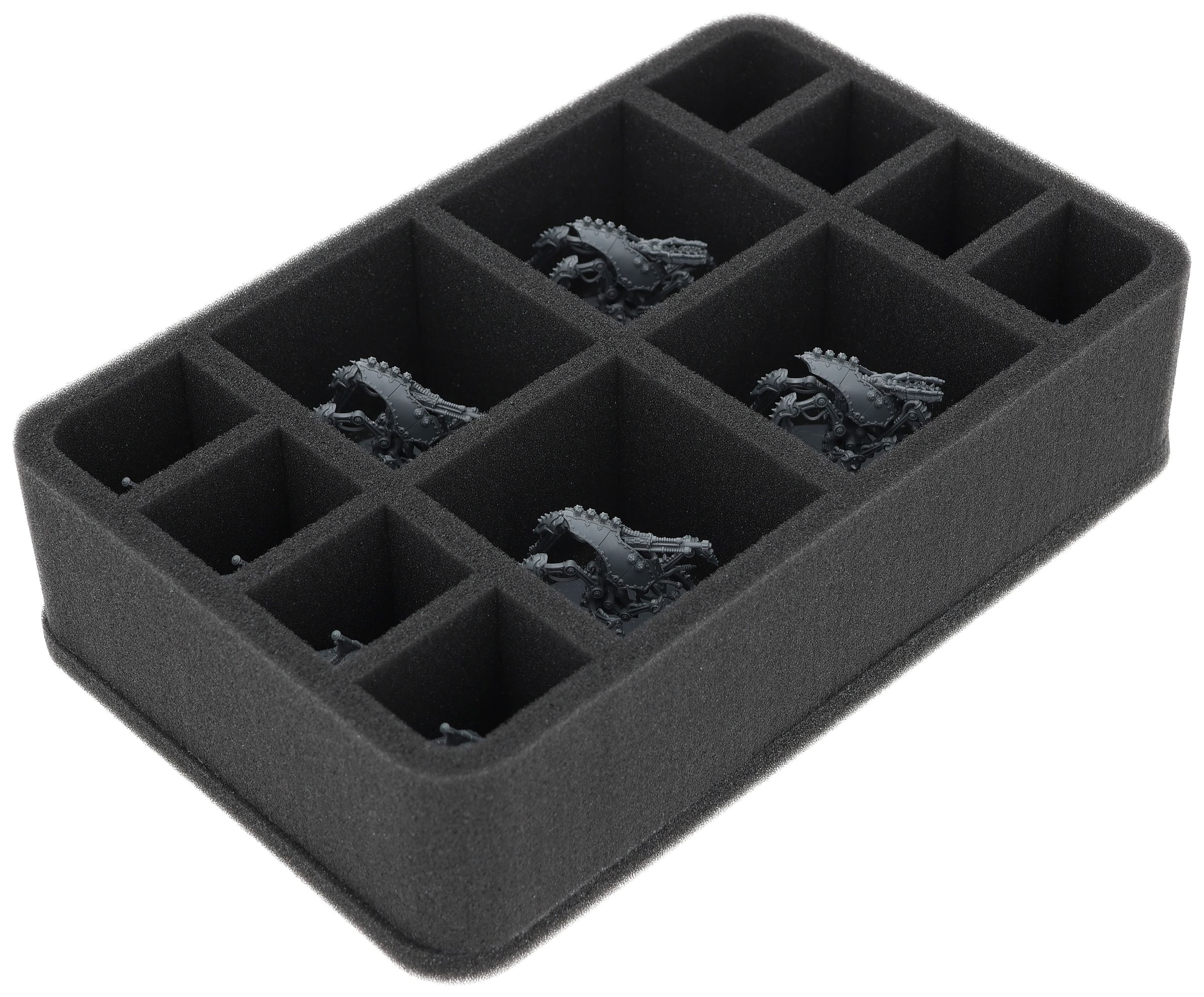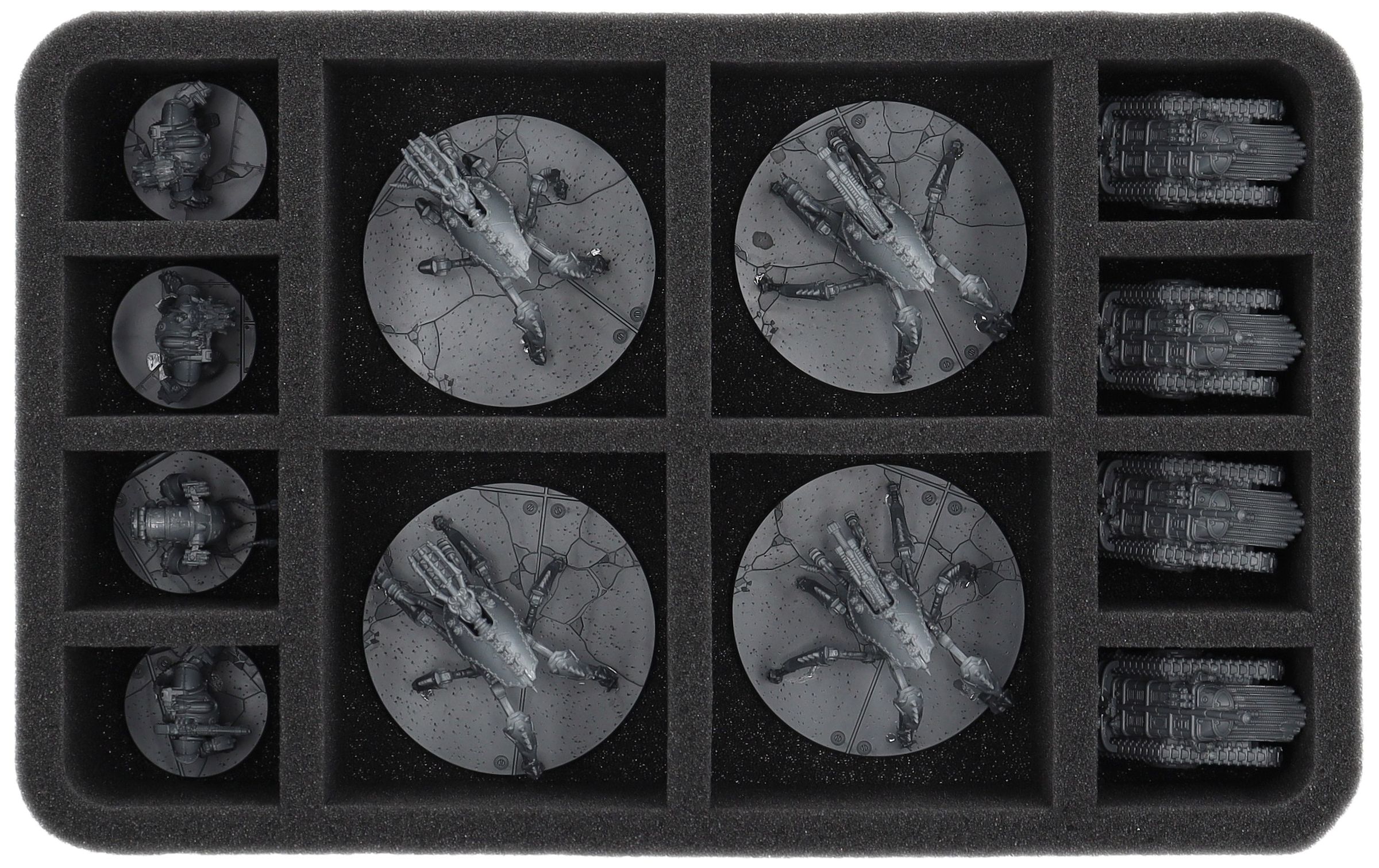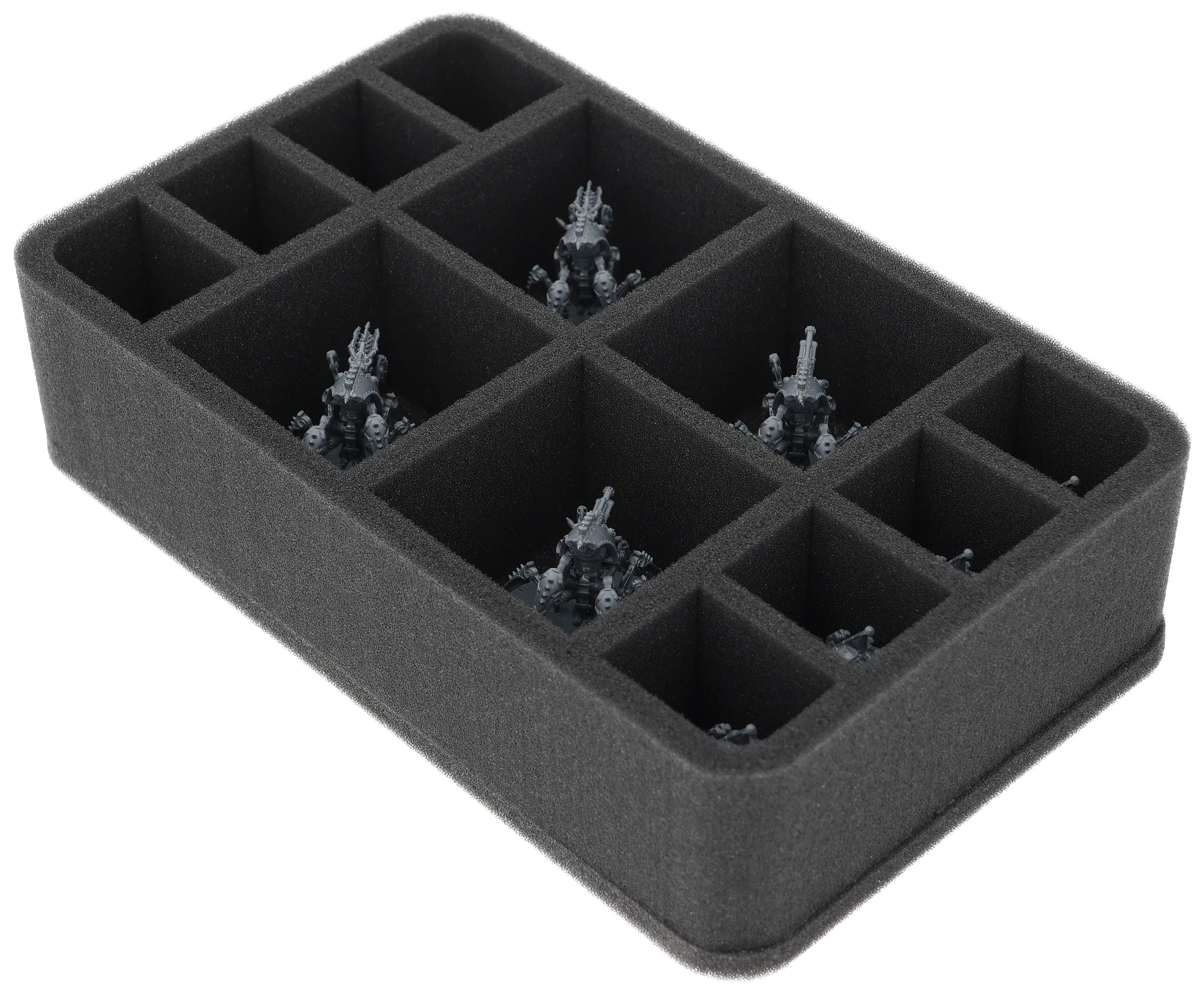 On this Feldherr foam tray you have space for up to 12 miniatures of your army. The insert is especially suitable for storing the Serperos 'Overlord' Heavy Stalkers, Mechanicum Trairos Squadron and similar sized models.