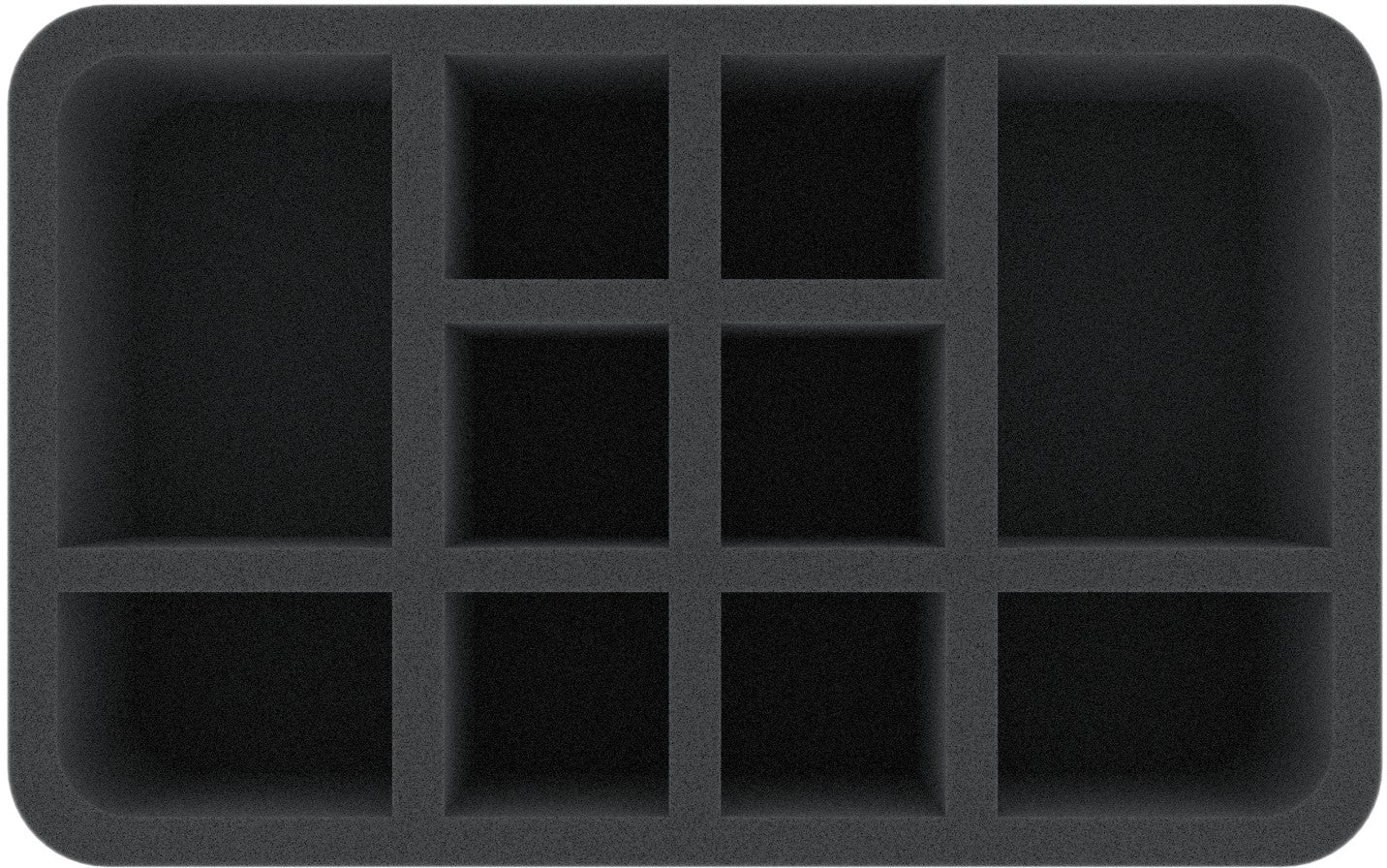 On this Feldherr foam tray you have space for up to 10 miniatures of your army. The insert is especially suitable for storing the Belladamma Volga, Radukar The Wolf, Radukar The Beast und Radukar's Court and similar sized models.