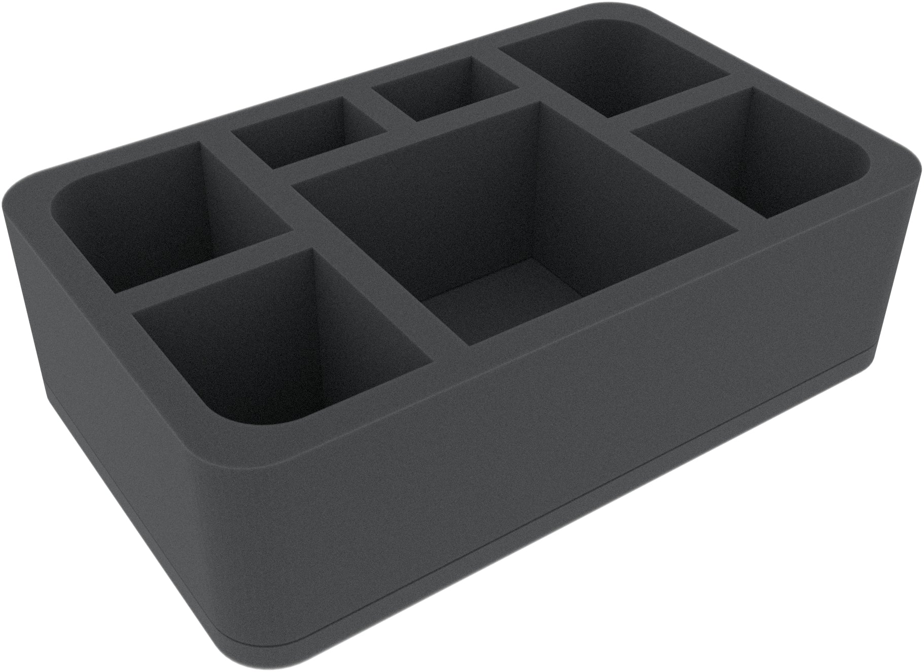 This half-size foam tray features seven different-sized compartments, one large square compartment, four medium-sized compartments, and two smaller rectangular ones. Stow the Eightbound, or its variant, the Exalted Eightbound, in the four medium-sized compartments. You use the large compartment for either a Hell Slayer or a World Eaters Chaos Lord on Moloch or Lord Invocatus. In the smallest compartments, you have space for Khorne Berserkers or Schakahls.