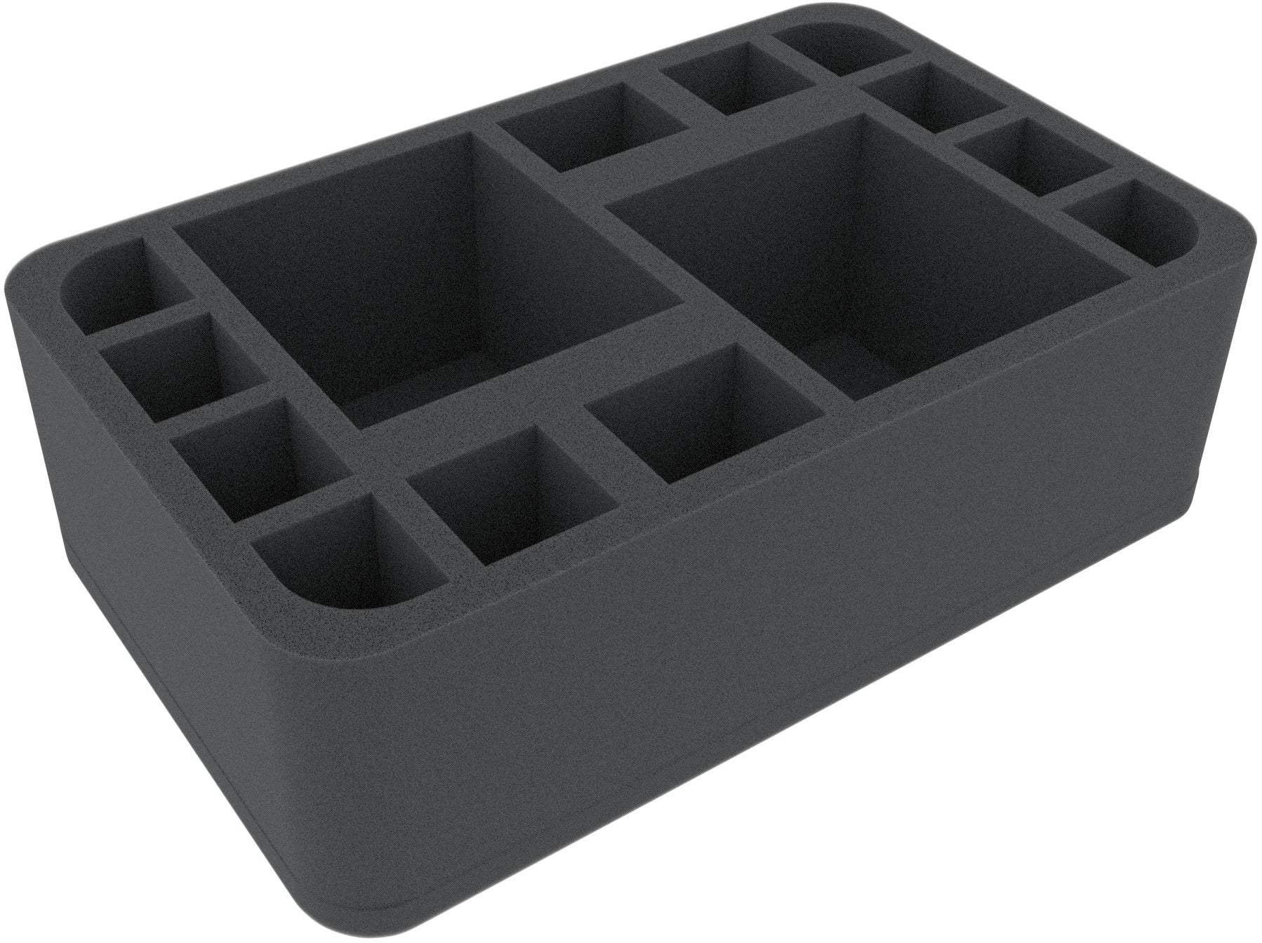 Up to 14 Star Wars: Legion miniatures can be stored neatly and securely on this Half-Size foam tray. The two large compartments are ideal for the Dewback Riders and other similarly large figures. The remaining 12 compartments can be filled with troopers and other infantry models, or can also be used to store accessories (e.g. tokens and dice).