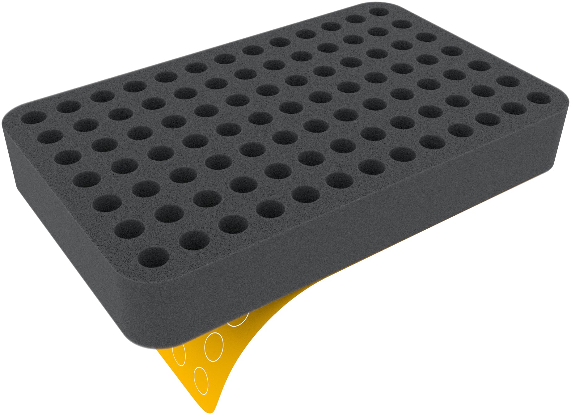- 1 Half-Size foam tray with 91 compartments, with a self-adhesive underside + matching foam base, for small spray bottles / atomizer bottles (HSMFKA040S + HS010B)