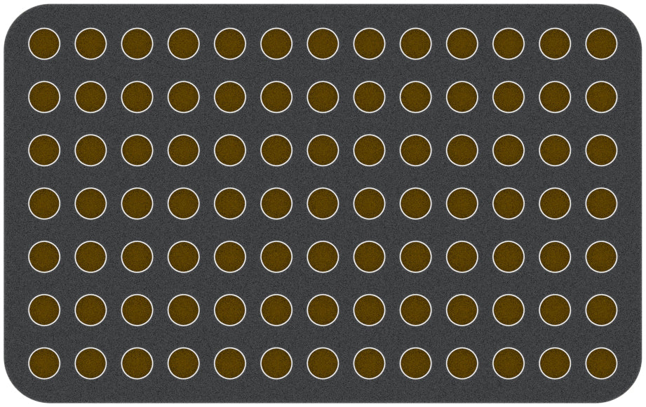 Each of the 91 compartments has a diameter of 13 mm and is 40 mm deep.