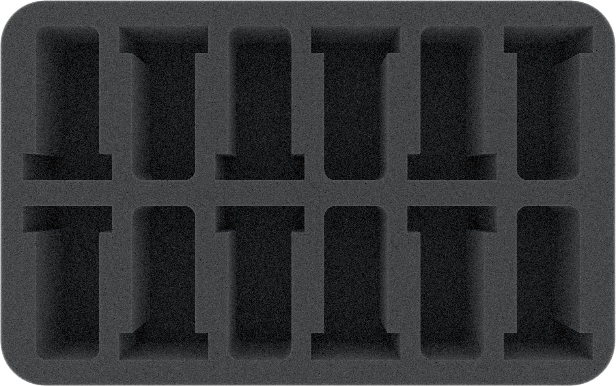 Plateau en mousse pour figurines encombrantes. La profondeur de 50 mm de la mousse est obtenue à partir d'une base en mousse de 10 mm et d'un plateau en mousse à fentes de 40 mm Profondeur effectiveLe plateau en mousse demi-taille se range dans nos sacs Feldherr, étuis rigides, sacs à dos et boîtes de rangement.