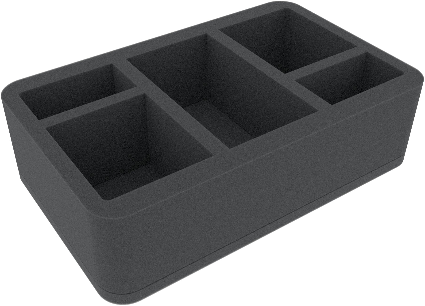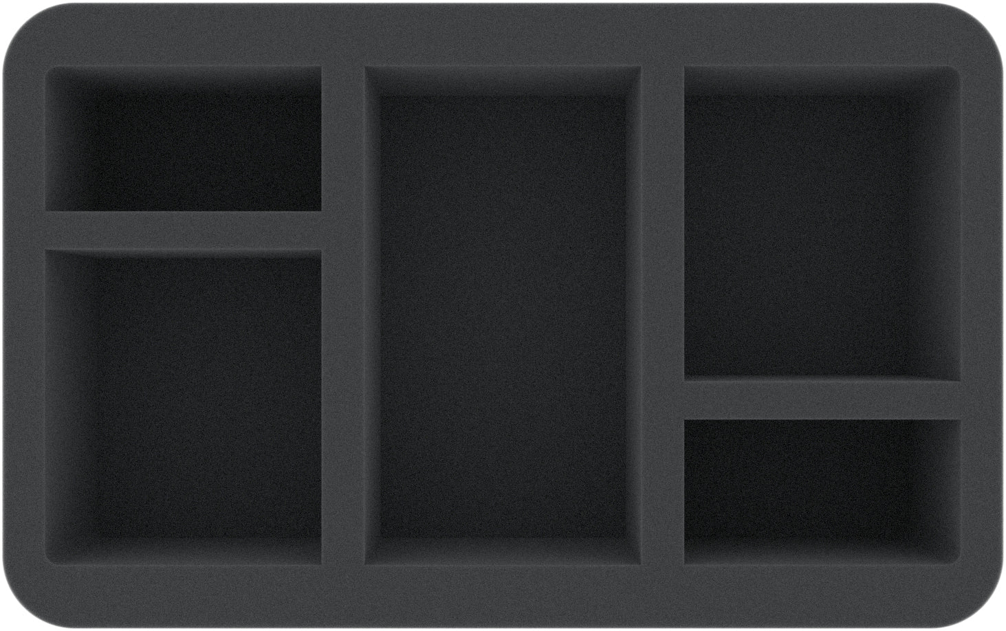 This 75 mm mm high foam tray is divided into 5 compartments. It is particularly suitable for the safe storage of tabletop and board game miniatures, as well as other fragile models and small parts.