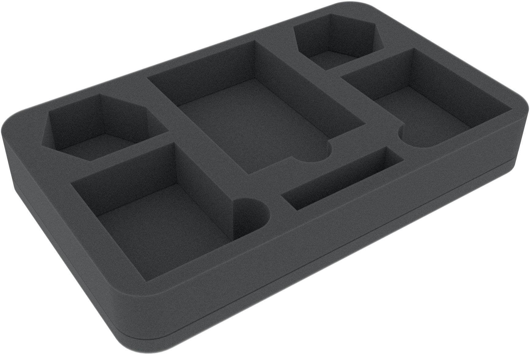 This Half-Size foam tray has 6 compartments of different sizes. It is particularly suitable for storing game materials such as cards, markers or tokens in a tidy way.