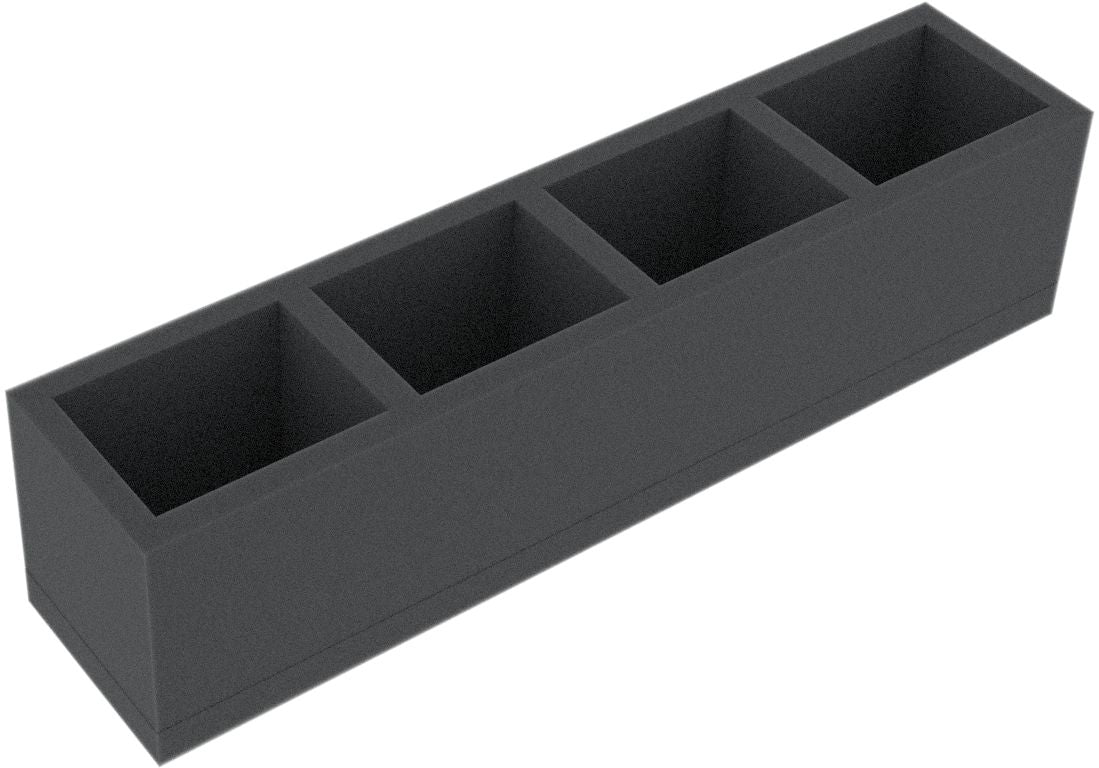 This 50 mm high foam tray is divided into 4 compartments. It is particularly suitable for the safe storage of tabletop and board game miniatures, as well as other fragile models and small parts.