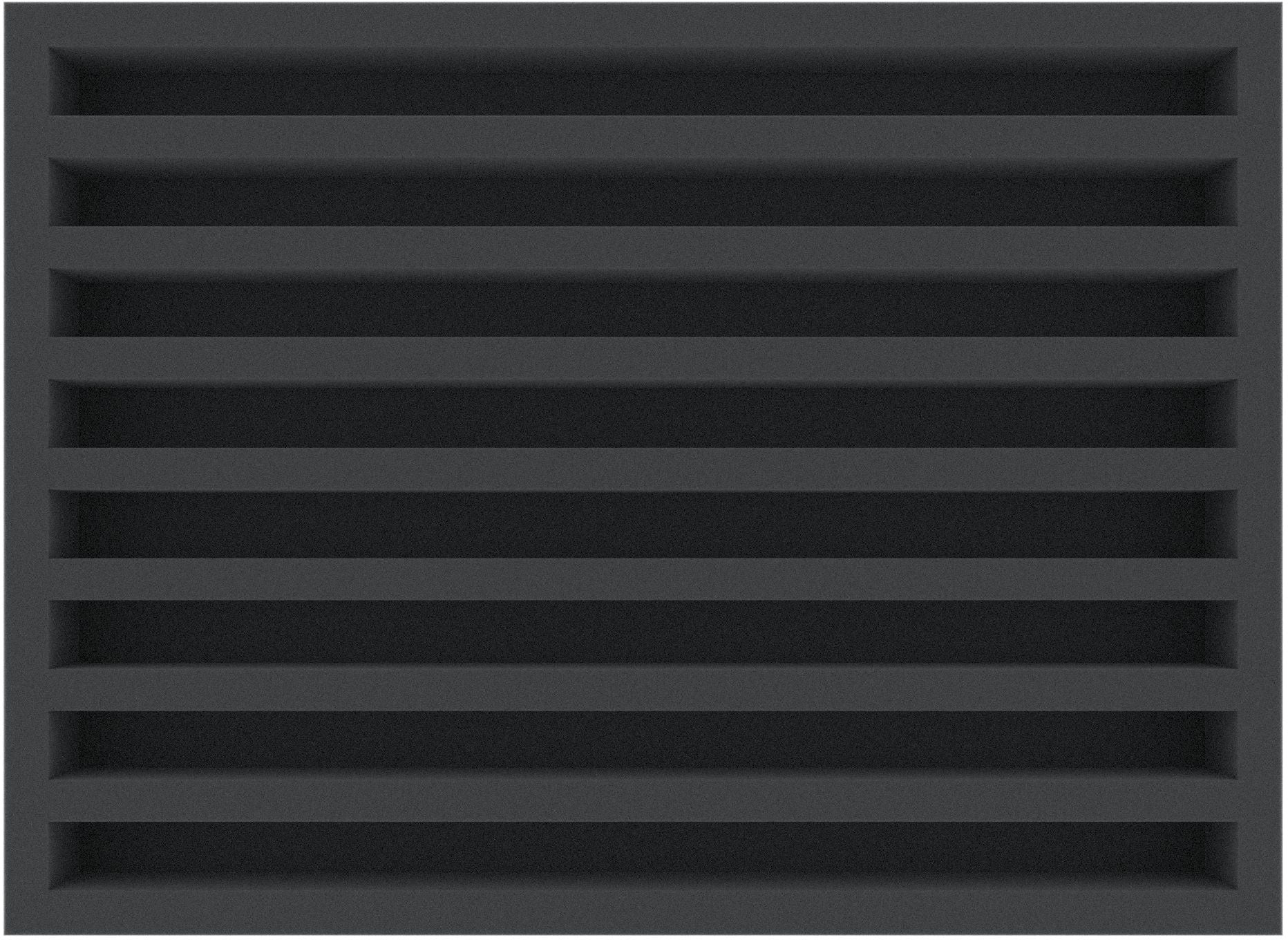 This foam insert with dimensions of 370 x 270 x 40 mm is designed for the safe storage and organized transport of elongated items. It features a total of 8 equally sized compartments, each measuring 344 mm in length and 20 mm in width. The internal height is 30 mm, complemented by a 10 mm thick base for added protection from below.