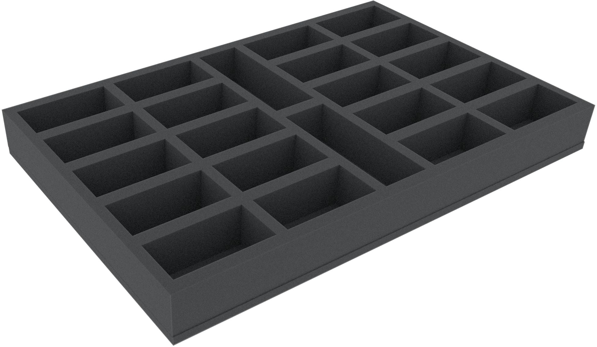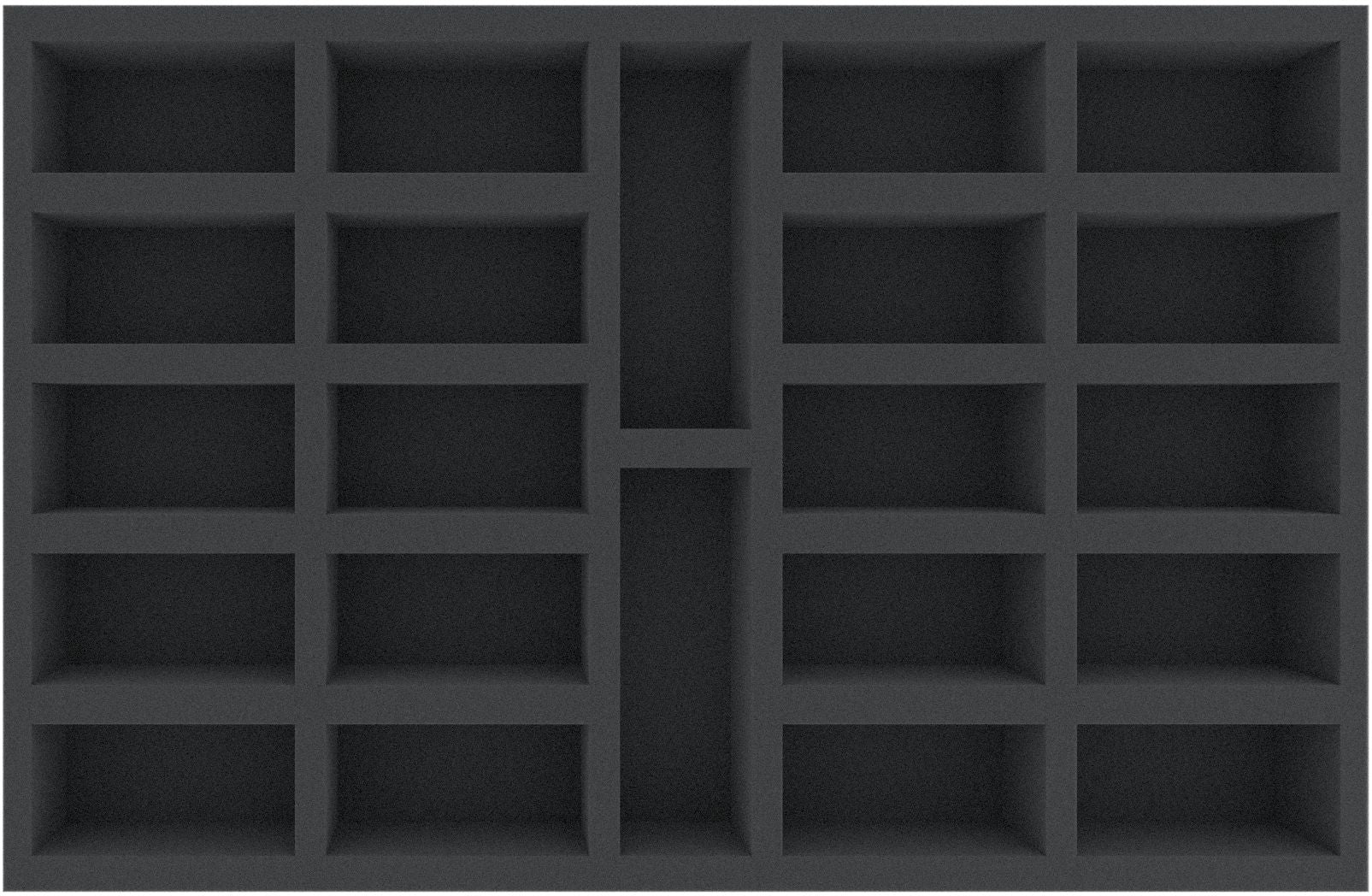 This 55 mm high foam tray is divided into 22 compartments. It is particularly suitable for the safe storage of tabletop and board game miniatures, as well as other fragile models and small parts.
