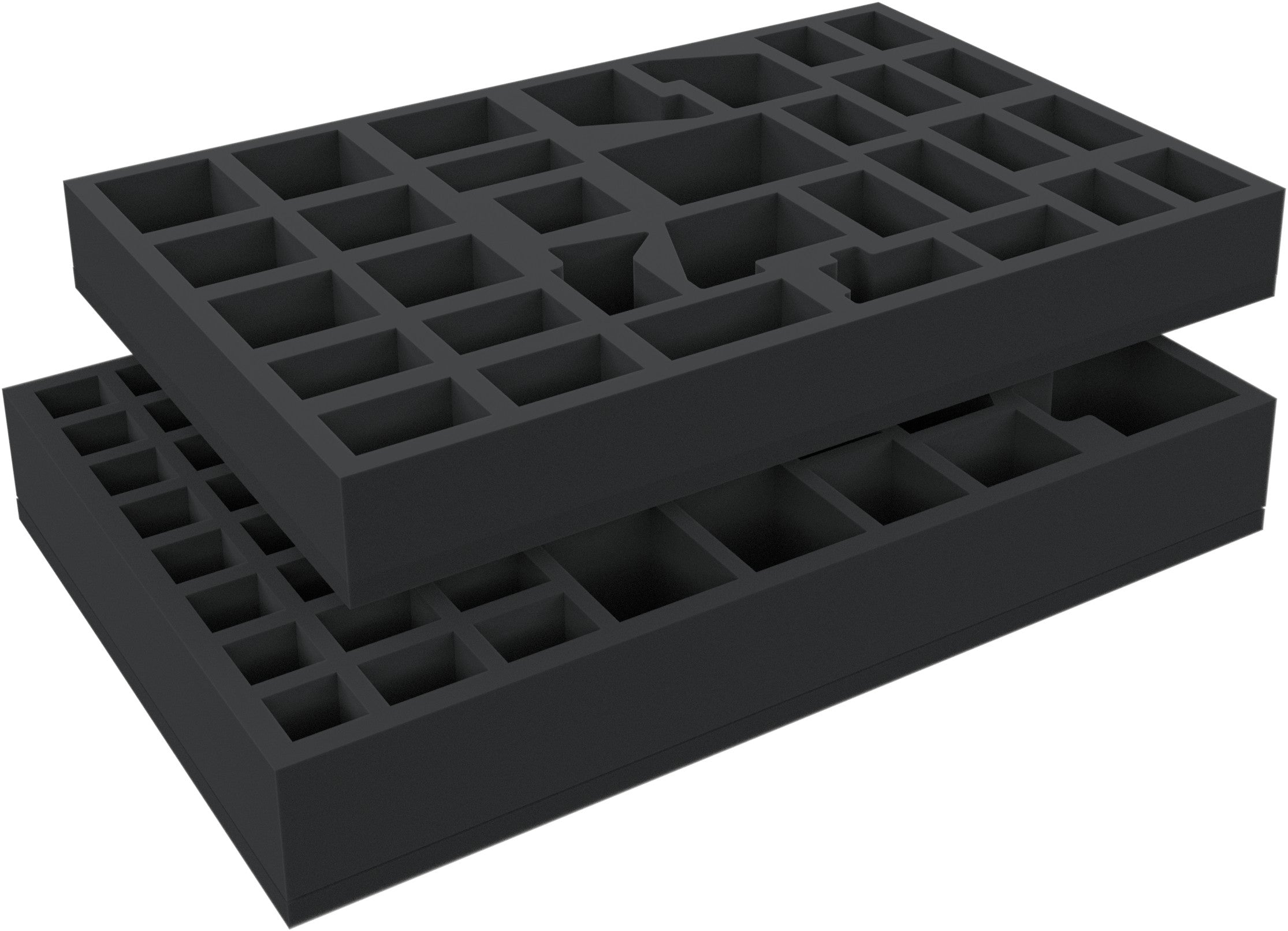 Protective foam trays for the Warhammer Quest - Silver Tower and Shadows Over Hammerhal. The trays provides a great solution for protecting all figures from the original board game boxes. There are two additional foam topper.