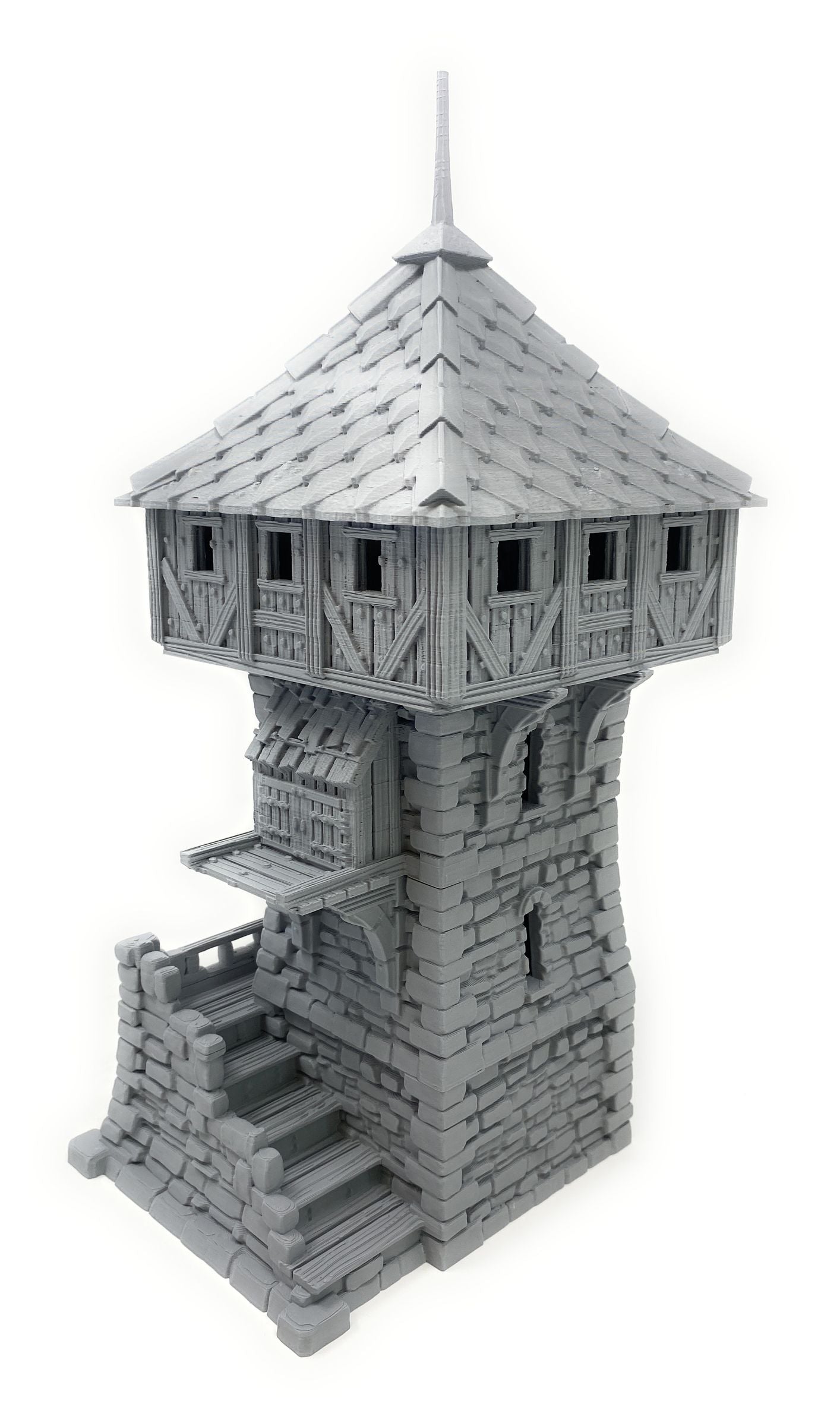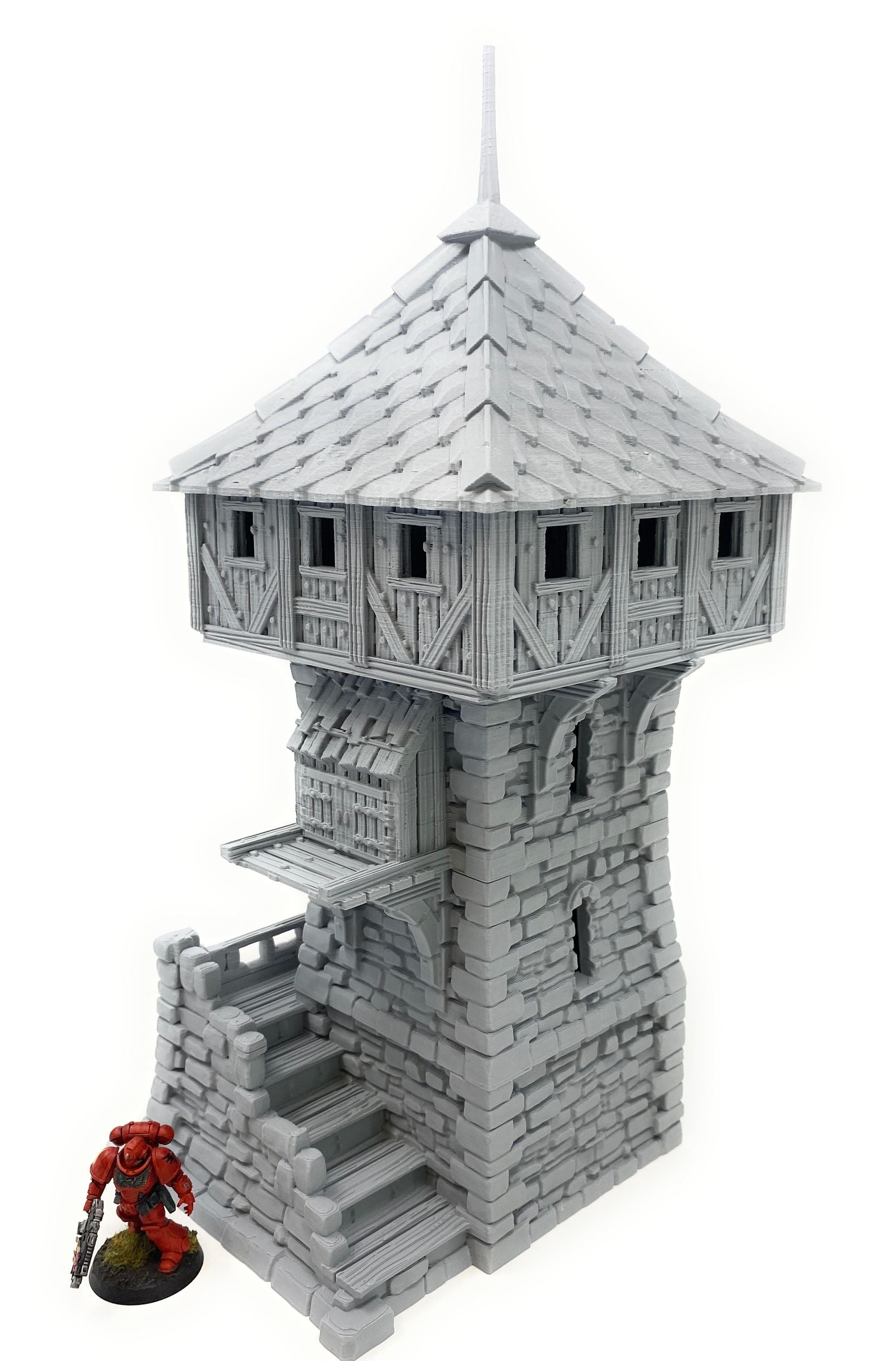 Tour de défense imprimée en 3D pour miniatures de table - Peignable et très détaillée - Parfait pour D&D, Wargaming et dioramas - Échelle 28mm - Env. 17x16x35 cm