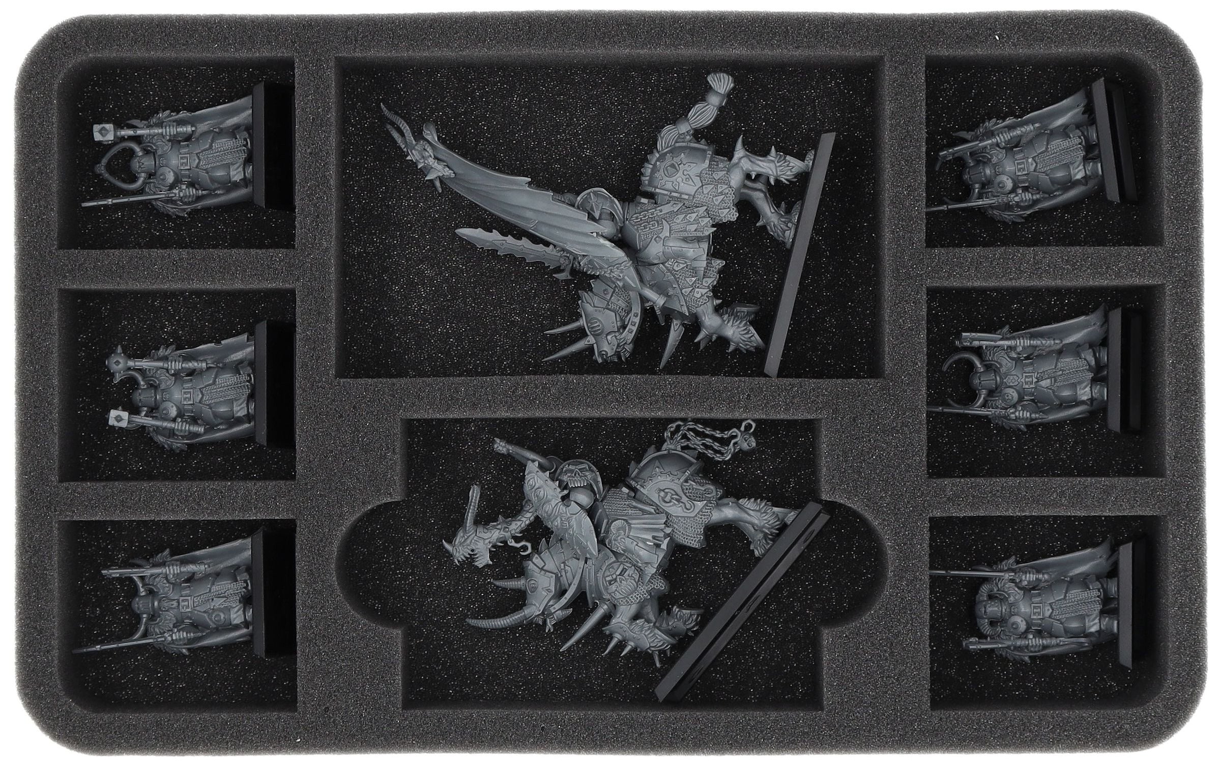 - Plateaux en mousse sur mesure : Les plateaux en mousse sont adaptés aux modèles de l'Empire des Hommes tels que les troupes d'État, les troupes d'État impériales, les épées grises et les figurines de dimensions similaires.