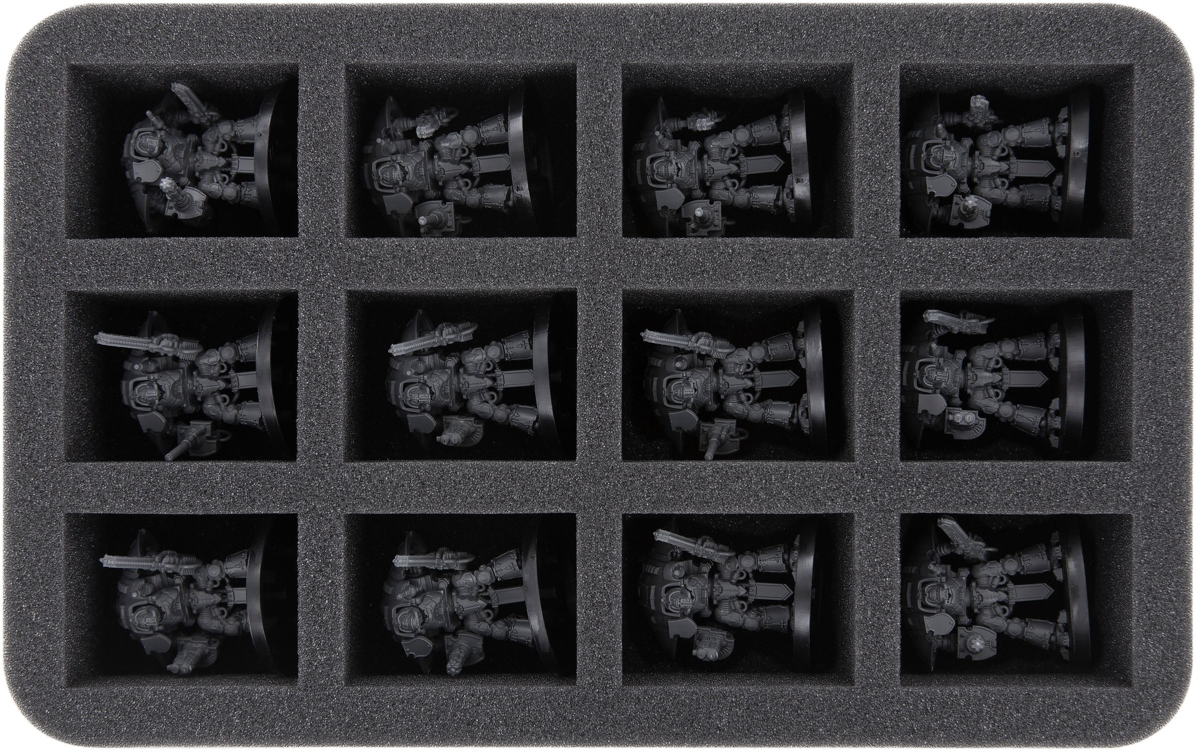 • 1 Half-Size mousses de rangements avec 12 compartiments pour Chevaliers Questoris et modèles de dimensions similaires (HS050WH29)