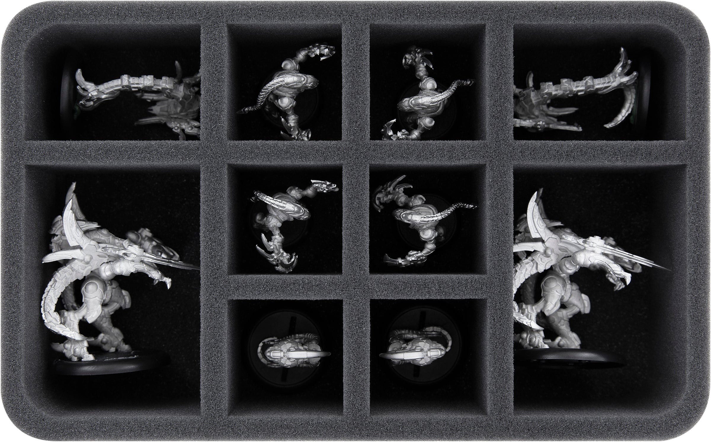 Grâce à la découpe sur mesure, les figurines sont bien ajustées. Même si le transport est un peu rude, les figurines restent en place. La mousse souple à pores fins protège les détails délicats contre la casse et les couleurs de vos modèles peints contre les rayures et l'abrasion de la peinture.