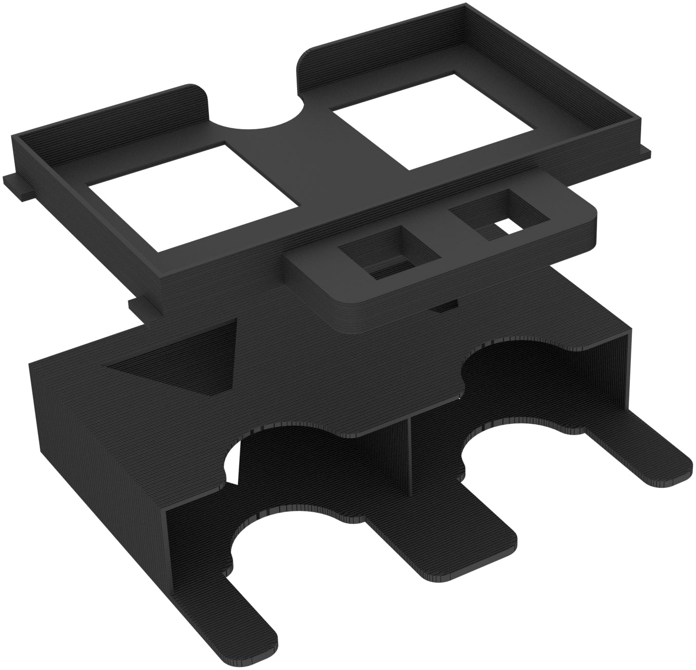 - L'un des porte-cartes offre un espace pour les cartes à jouer de taille normale, l'autre pour les grandes cartes et les dés.