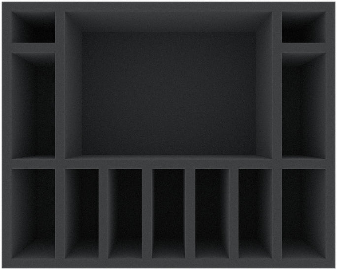 Ce plateau en mousse de 105 mm de haut est divisé en 12 compartiments. Il est particulièrement adapté au rangement sécurisé des figurines de jeux de table et de société, ainsi que d'autres modèles et petites pièces fragiles.