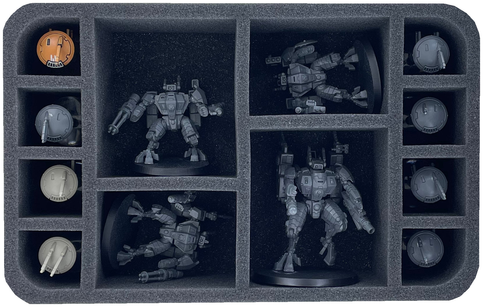 Ce plateau en mousse Half-Size est divisé en 8 compartiments de différentes tailles. Il convient aussi bien aux modèles plus grands et encombrants qu'aux petites unités de votre armée Xenos.