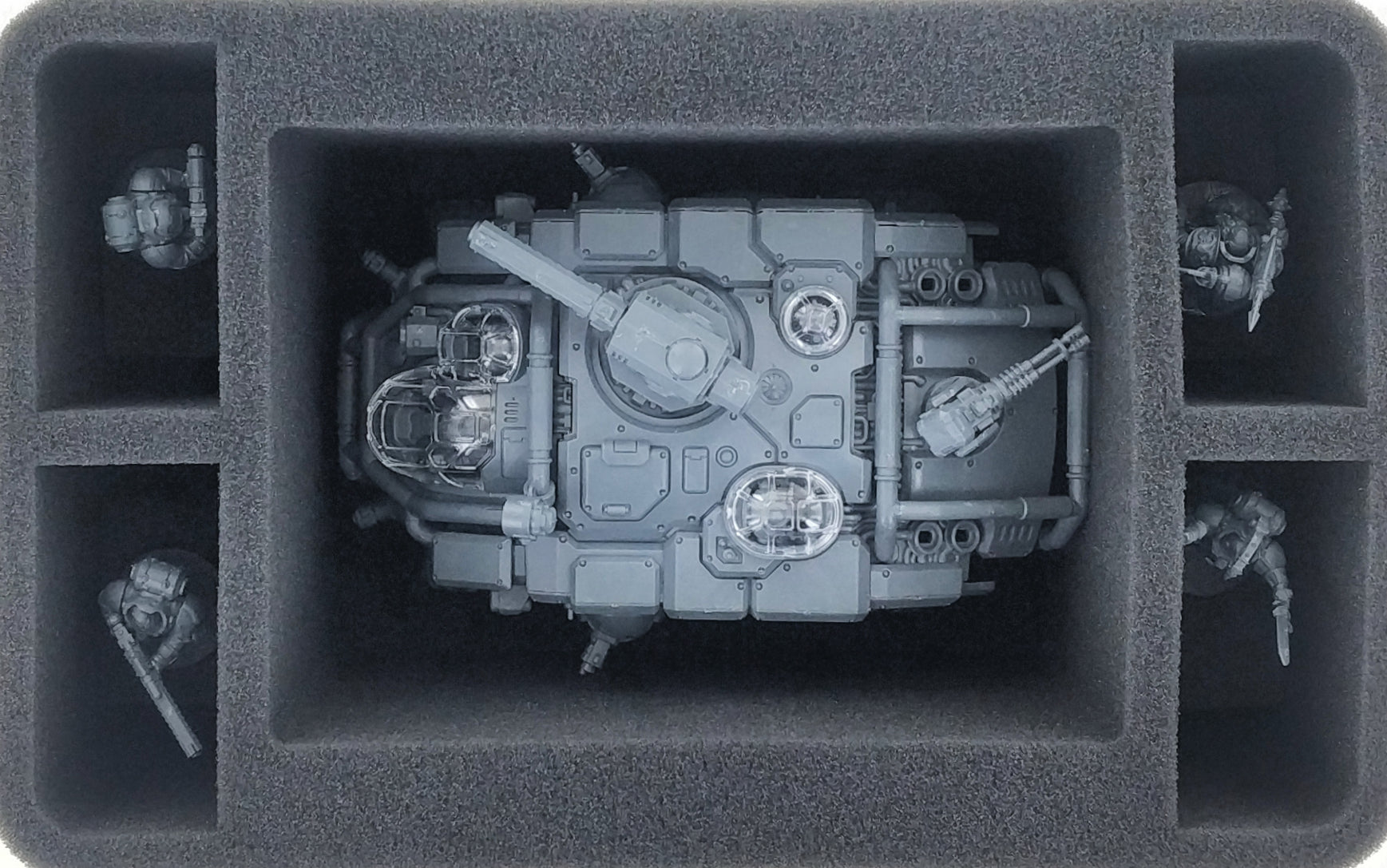 Les compartiments découpées sur mesure empêchent votre figurines de glisser pendant le transport et d'être endommagée. La mousse souple à pores fins protège les détails filigranes contre les risques de pliage ou de rupture. Si vous avez peint vos modèles, vous pouvez être sûr que la mousse empêchera les rayures et l'écaillage de la peinture de manière tout aussi fiable.
